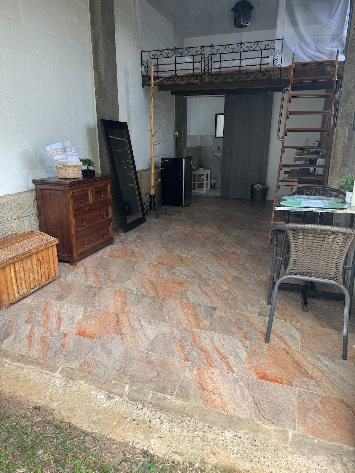 Apartaestudio en casa campestre , rodeado de hermosa vegetación. Disfruta de un espacio sencillo y acogedor, ideal para descansar y desconectarte de la rutina. Espacio para máximo 2 personas , cuenta con cocina, zona de lavandería , baño privado con agua caliente, hidromasaje a temperatura ambiente y ducha externa . Mezzanine con colchón para dos personas, sofacama o carpa para acompañantes. Wifi 24 horas.
