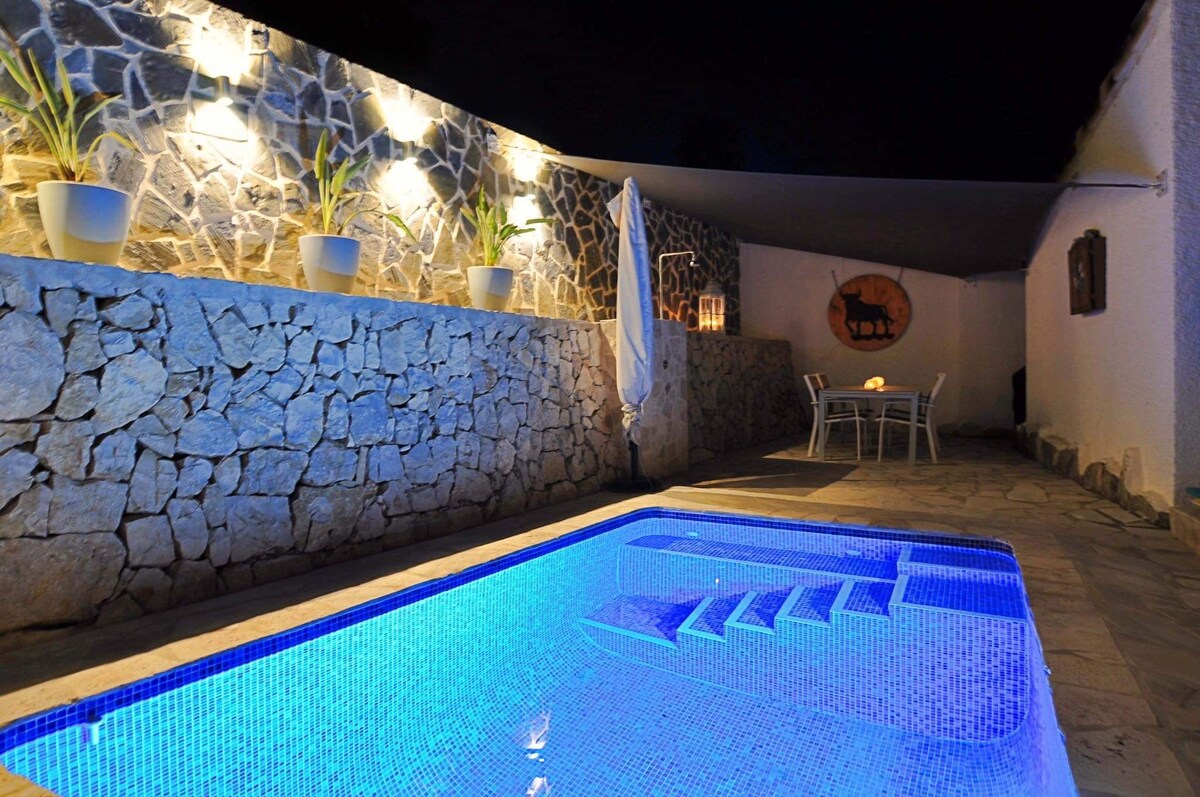 Bungalov v klidné rezidenční oblasti s bazénem, skládající se ze dvou pokojů, kuchyně, koupelny, jídelny a zahrady o rozloze asi 50 metrů čtverečních, kde se nachází gril. Vzdálenost od pláže Moraig je 2,2 km a od pláže Portet 3,5 km, v okolí je také mnoho turistických tras, výstup na Montgo, katedrála pěší turistiky, výstup na Puig Campana ..... Velmi klidná a poklidná oblast
