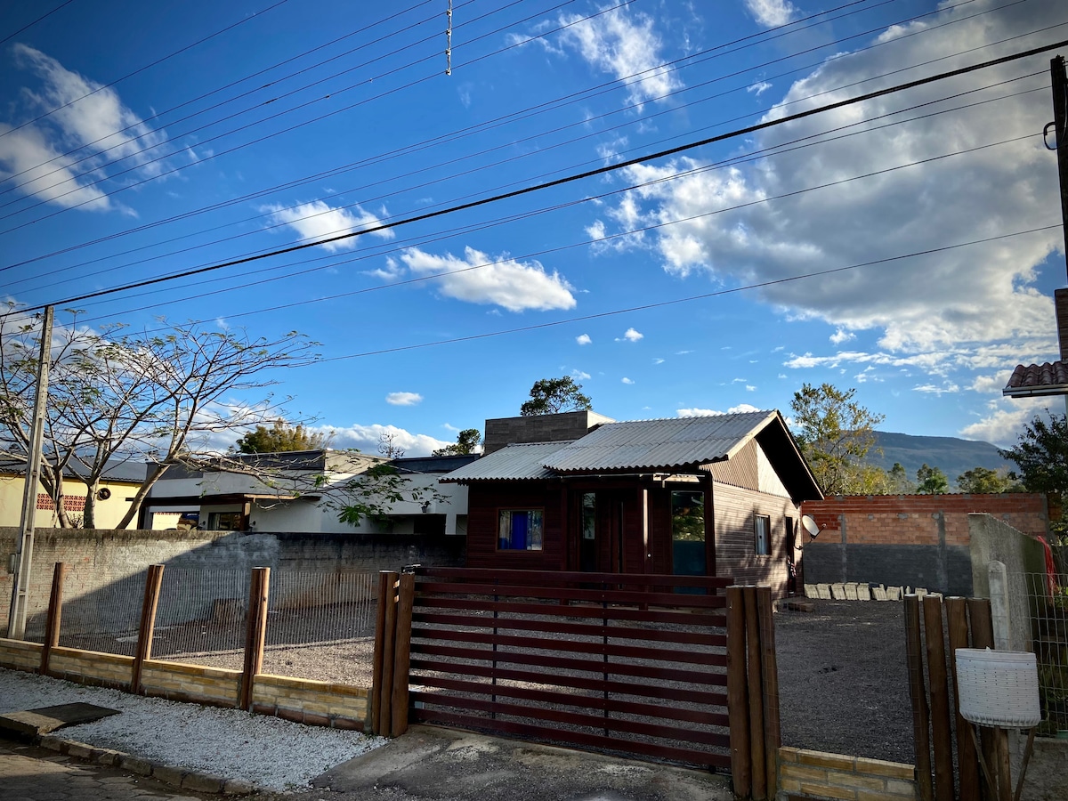 Dům se nachází v krásné a bezpečné čtvrti poblíž řeky Mampituba s výhledem na kaňony, s ovocným sadem a zahradou. Nad domem se vznášejí balónky. Je zde ticho, které ve městě nenajdete. 5 minut od centra Praia Grande.