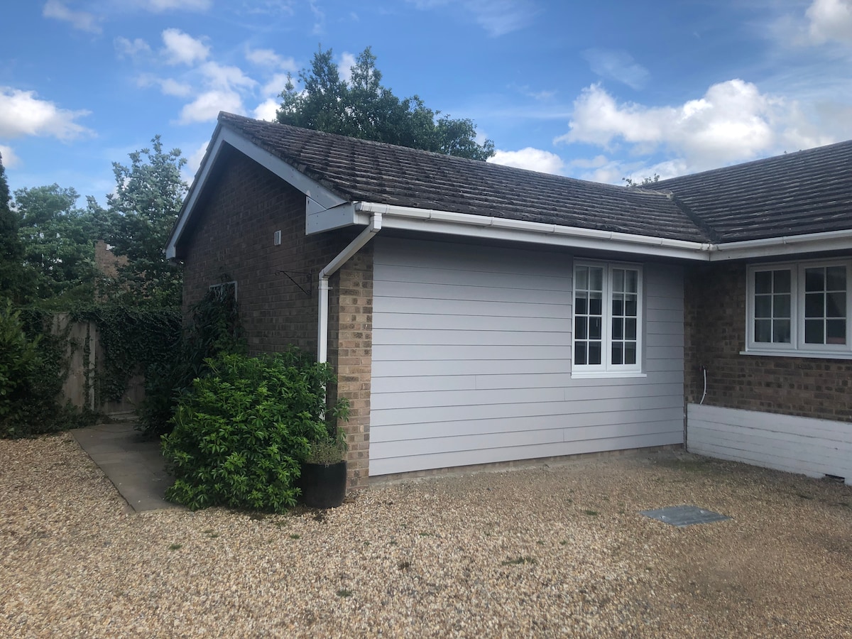 Útulný zahradní domek v krásném prostředí obklopeném stromy se zvukem ptáků a veverek, které se honí mezi stromy. Soukromá příjezdová cesta a soukromá terasa se stoly a židlemi. V blízkosti Ely, kde můžete navštívit katedrálu Ely a dům Olivera Cromwella, také rekreační vesnici Newmarket je 20 minut jízdy a je známý pro koňské dostihy. Snadný přístup po A10 do Cambridge Ve vesnici je zahradní centrum Twenty pence, kde podávají snídani. restaurace/hospoda ve vesnici Obchod a řeznictví v Haddenhamu