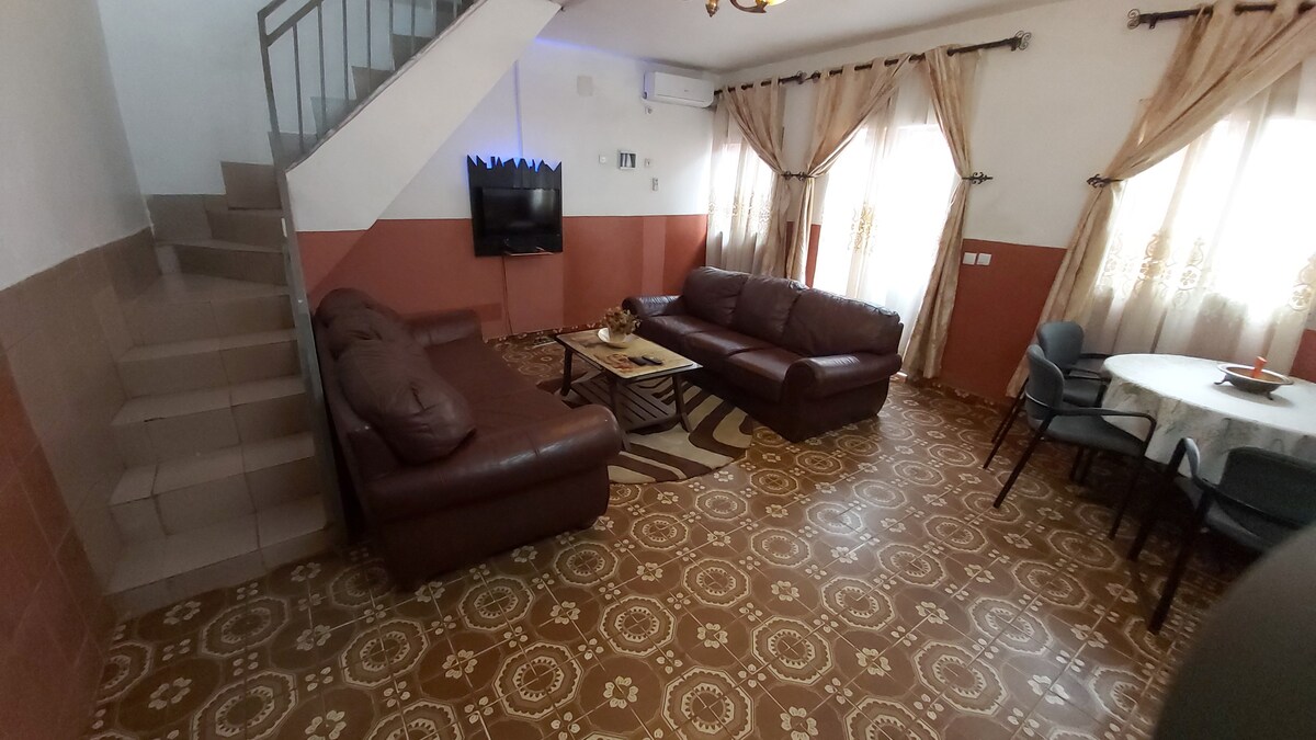 Odpočiň si v tomto novém, velmi funkčním a autentickém ubytování, které se nachází v super bezpečné rezidenci 10 minut od letiště Douala a exkluzivní čtvrti Douala (bonapriso);jen v centru veškeré občanské vybavenosti... Každý den budete mít k dispozici pokojskou, pračku,otevřenou a funkční kuchyň. Správce, velké parkoviště a dvě zařízení (ve dne i v noci), aby bylo zajištěno osobní sledování pod mým dohledem.