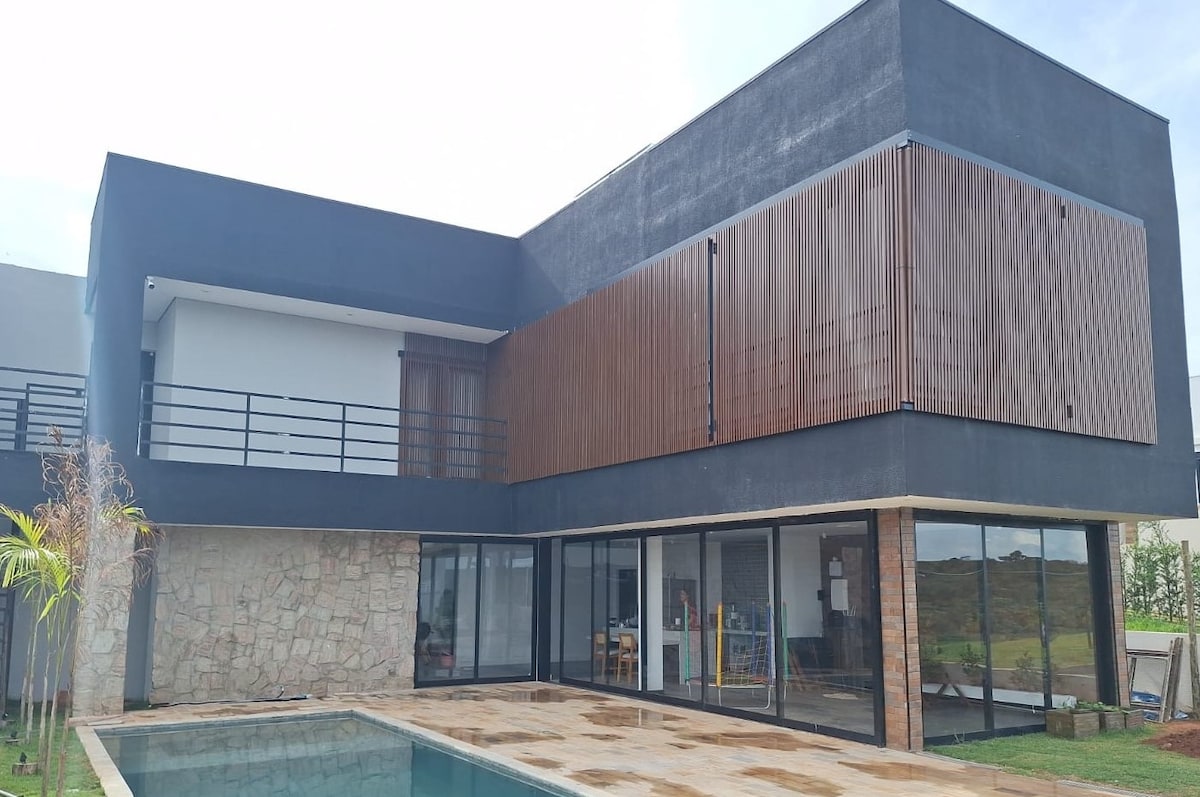 Casa Lumi je perfektní pobyt na venkově! Odpočiň si v tomto klidném, stylovém prostoru uprostřed přírody. A perfect environment to rest and live special moments with family or friends just 90 minutes from São Paulo. This modern country house is located in a safe condominium, offering peace and privacy for you and your family. S útulnou architekturou a dostatkem prostor je dům ideální pro ty, kteří hledají pohodlí a kontakt s přírodou.