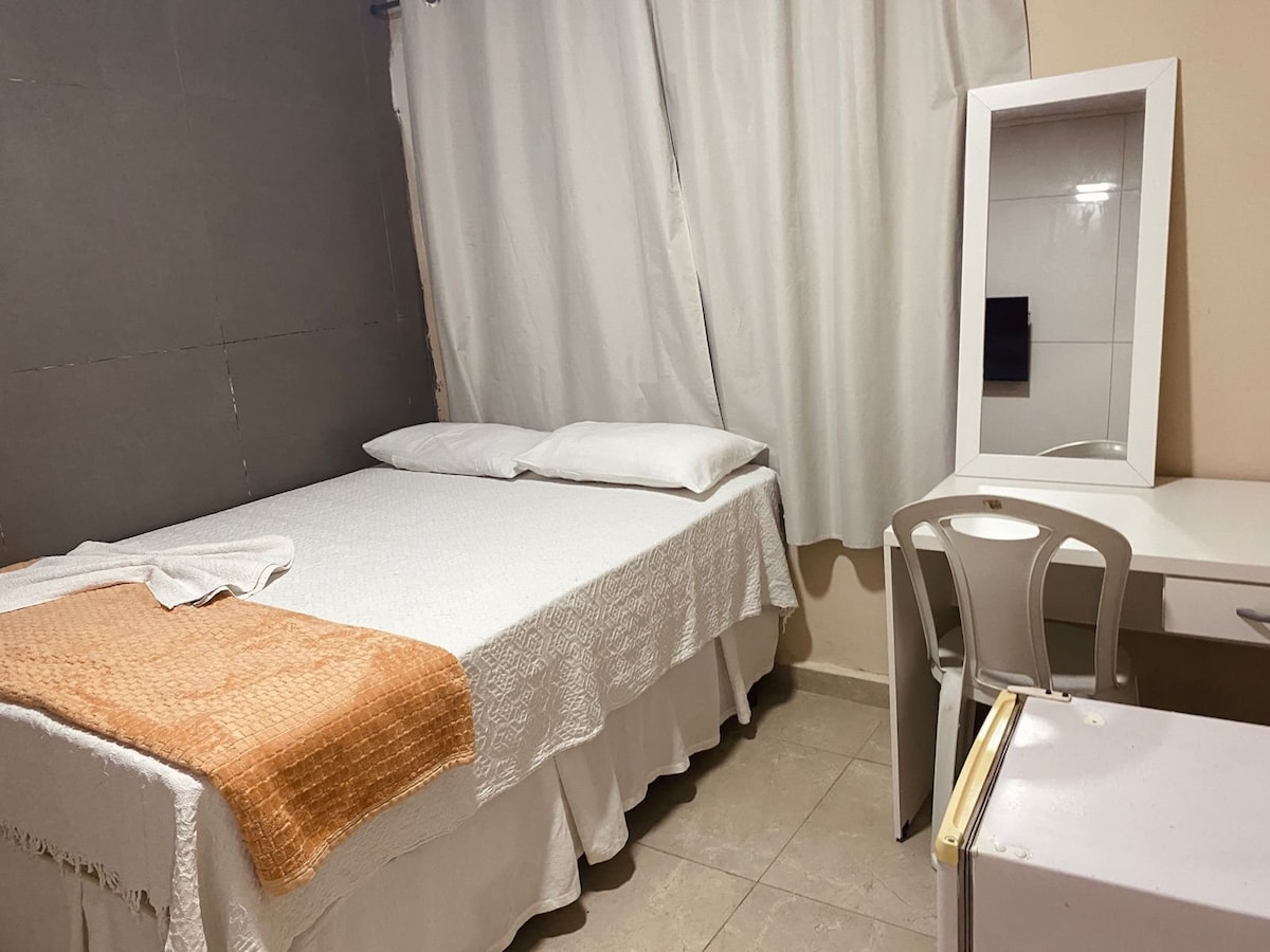 Zařízený, útulný a světlý apartmá, ideální pro ty, kteří hledají pohodlí a praktičnost. Nachází se v sousedství Santa Cruz v Campina Grande, v klidné a bezpečné oblasti, v blízkosti trhů, lékáren a veřejné dopravy. Má postel, televizi, klimatizaci, Wi-Fi a vlastní koupelnu. Ideální pro studenty, profesionály nebo cestovatele, kteří oceňují klidné a funkční prostředí.