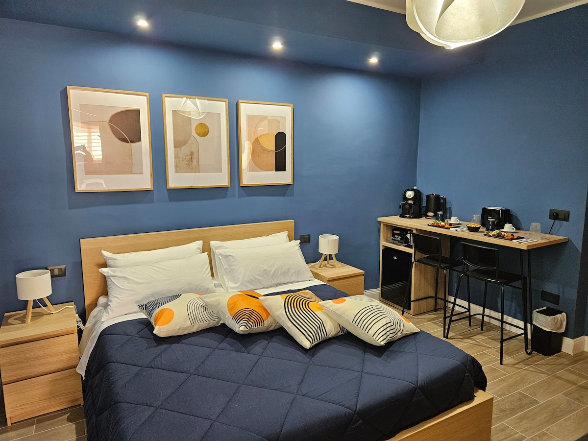 Vítej v Casa Alessandro, venkovské rezidenci z počátku 20. století, 20 minut od královského paláce v Casertě, ponořené do klidu Corte Marco 'c, oblíbené umělci a cestovateli hledajícími krásu. • 40m2 apartmá s obývacím pokojem, snídaňovým stolem a přímým přístupem na terasu. • druhá jednolůžková ložnice k dispozici na požádání pro třetí osobu • kuchyňský kout vybavený mini ledničkou, mikrovlnnou troubou, rychlovarnou konvicí a indukční varnou deskou, ideální pro snídaně nebo rychlá jídla