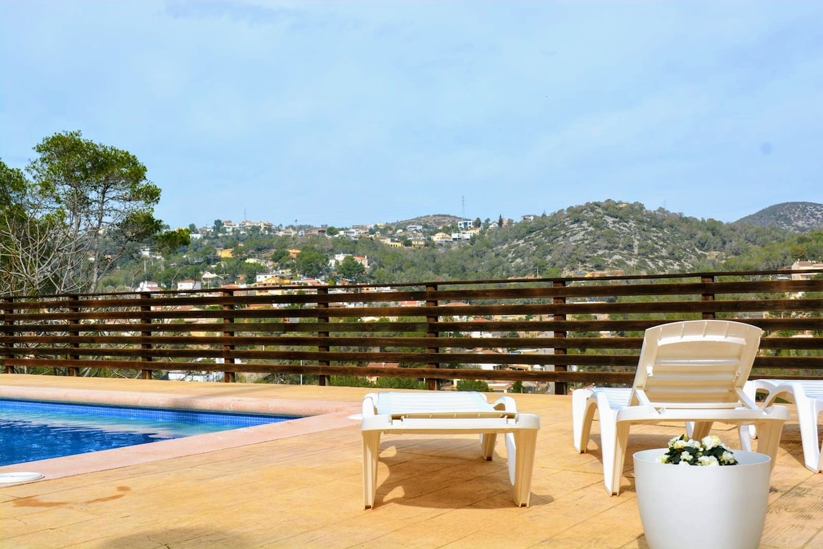 ZVEŘEJNĚNO V ÚNORU 2024. Velmi pěkný dům, plně vybavený. Má bazén, gril, terasy a svíčku se zahradním nábytkem, stejně jako velký exteriér pro děti a domácí mazlíčky. It is located in a very quiet area within the Garraf Natural Park just 9 km. from the magnificent beaches of Sitges. Také velmi přístupné a dobré spojení k návštěvě města Barcelona asi 40 km. daleko. Okouzlující dům pro skvělý pobyt!