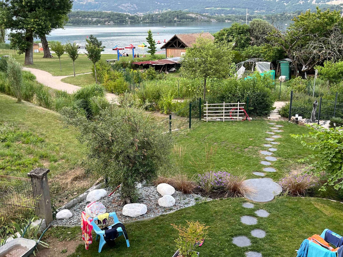 Samostatné ubytování bez protějšího domu (cca 20 m² + 10 m² krytá terasa) v přízemí zahradní chaty obývané u jezera Bourget: samostatná kuchyně, koupelna, obývací pokoj a krytá terasa s nádherným výhledem na jezero. V ubytování je i v horkém počasí příjemný chládek. Přímý přístup na pláž Brison-St Innocent - 200 m pěšky a mnoho aktivit v blízkosti v létě i v zimě. Ložní prádlo není k dispozici - Přítomnost domácích zvířat (2 kočky) NEVHODNÉ PRO DĚTI