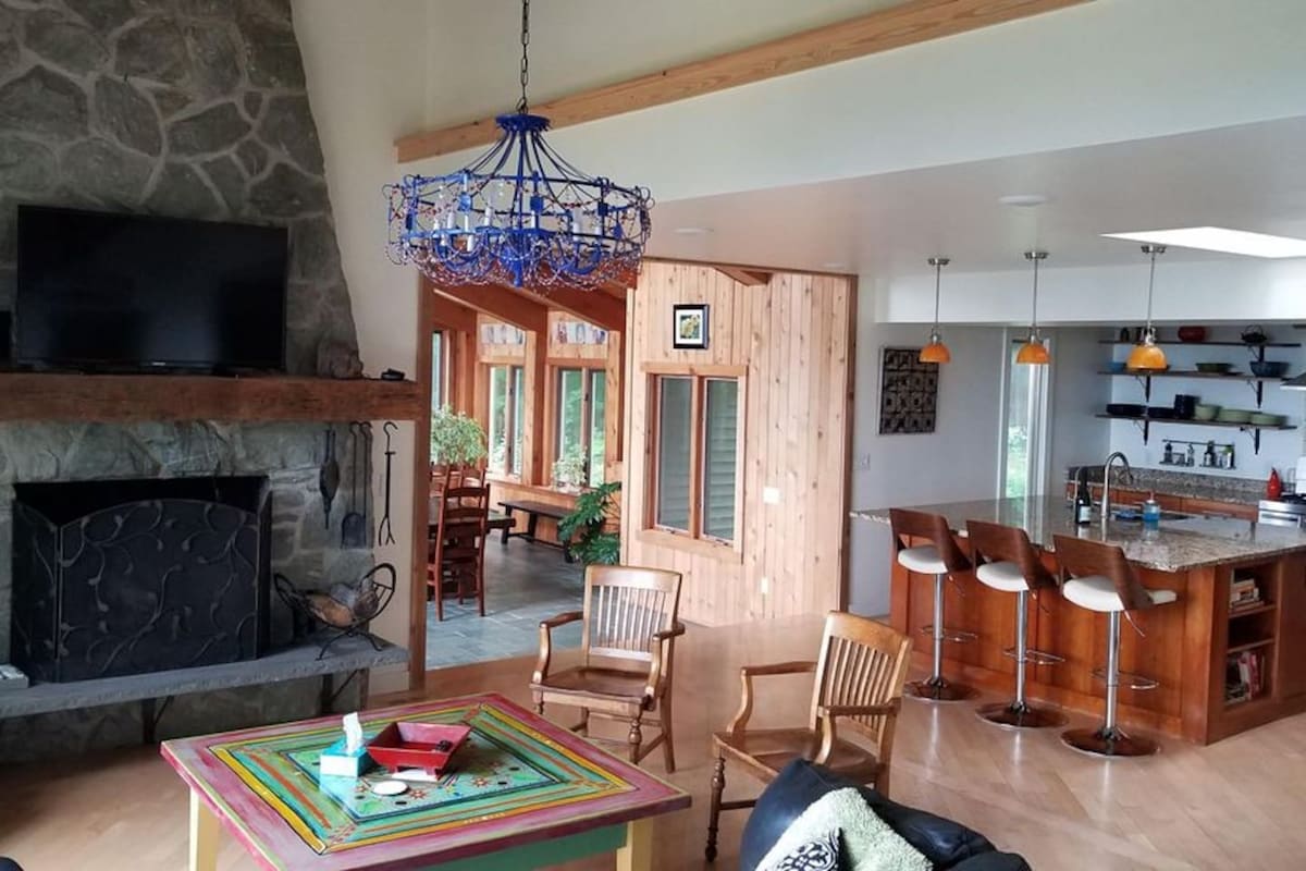 Odlehlý, prostorný dům s výhledem na jezero Canandaigua na 6 zalesněných a parkovitých akrech. Panoramatické výhledy, které berou dech. Obklopený lesem a sousedící s klikatým žlábem pro celoroční turistiku. Zapuštěný bazén, celoroční vířivka na obrovské terase; krásný glampingový stan v lese s přírodním ohništěm. Plynový gril a kuchyně pro šéfkuchaře po dlouhém dni lyžování na Bristol Mountain, 12 mil daleko. Plně vybavená posilovna. Výlety za vínem/pivem, plavba lodí, golf, příroda, přímo venku. Uvolni se a užij si toto „vyvolené místo!“