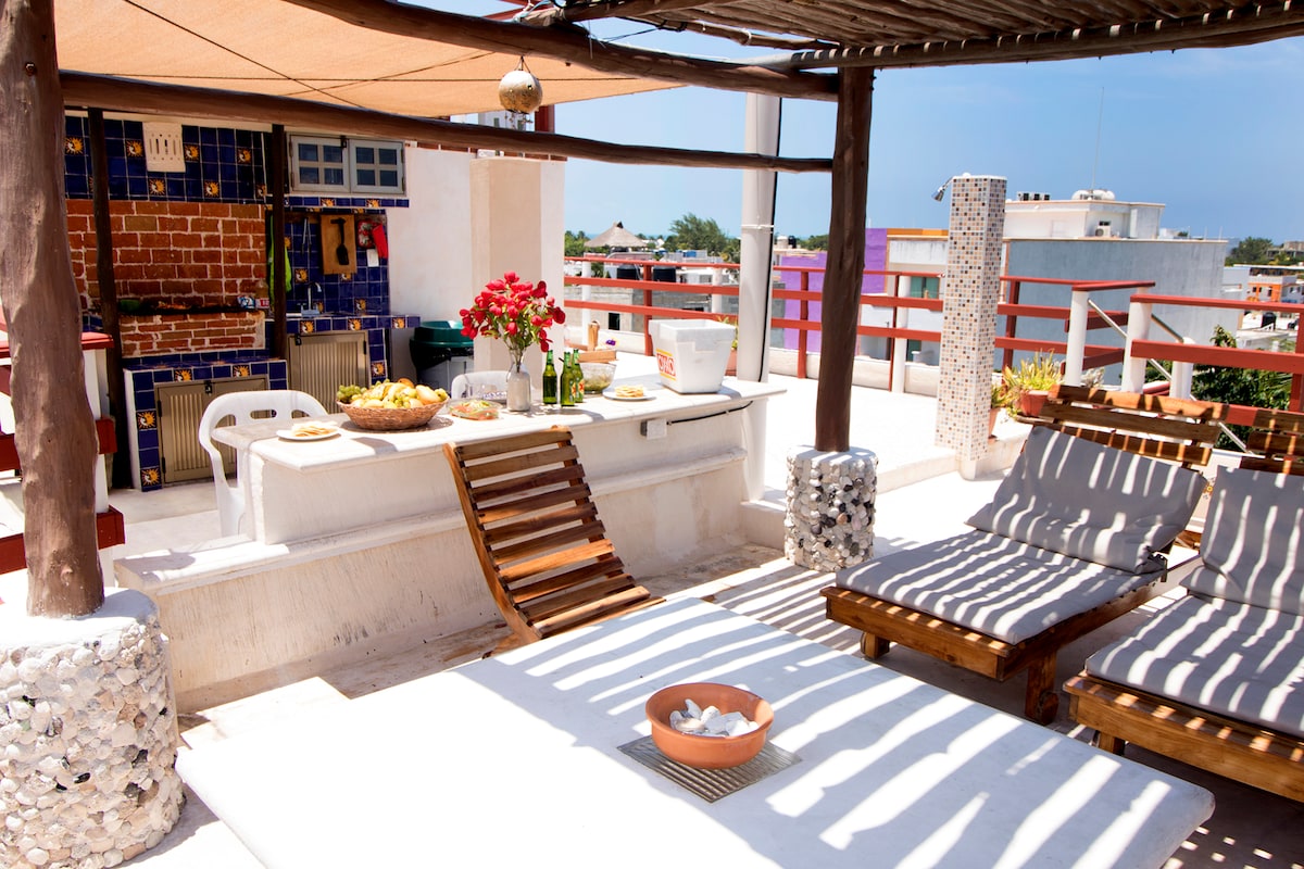 Pouze dospělí starší 18 let. Nacházíme se pouhých 800 metrů od trajektu na Isla Mujeres a naše nejbližší pláž je vzdálena pouhých 10 minut chůze. Garsonka má vlastní koupelnu a kuchyňský kout vybavený elektrickou pánev. Sdílené prostory, které zahrnují terasu i bazén, jsou otevřeny pro naše hosty. Také jsme implementovali Starlink Satelitní internet, ideální pro ty, kteří potřebují práci ve vysokorychlostním! Bahari přijímá rezervace pouze přes airbnb