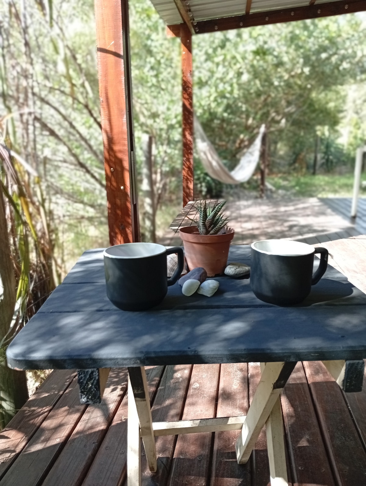 Srub v Cortijo má jeden pokoj s vlastní koupelnou a obývací pokoj s kuchyní. Je obklopen okny, ze kterých si můžeš vychutnat výhled a zároveň si dát kávu na koních v poli. Má verandu se stolem a židlemi, kde si můžete vychutnat venku. Kuchyňské náčiní, povlečení, ručníky, šampon a mýdlo jsou v ceně.