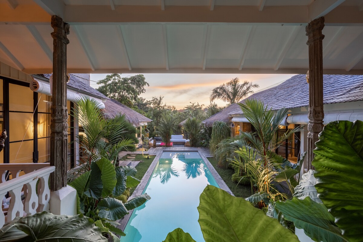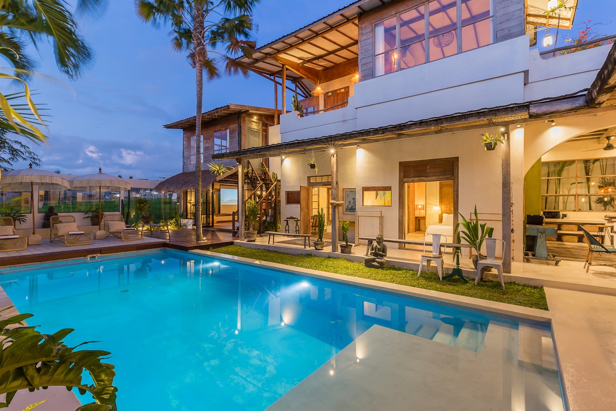 *Maximální kapacita 6 dospělých a 4 děti* Hned za centrem slavného Canggu se nachází vaše oáza mezi rýžovými poli, džunglí a tekoucí řekou. Tato pečlivě zařízená dvoupatrová luxusní vila se čtyřmi ložnicemi nabízí pohodlný a pohlcující zážitek a klidné místo, zatímco jste stále blízko oblíbených míst k jídlu a objevování. Přijeďte sem se svými dětmi a užijte si vynikající dětský pokoj s patrovými postelemi, domečky na hraní, velký bazén a jednu z nejlepších zahrad, které v Canggu najdete