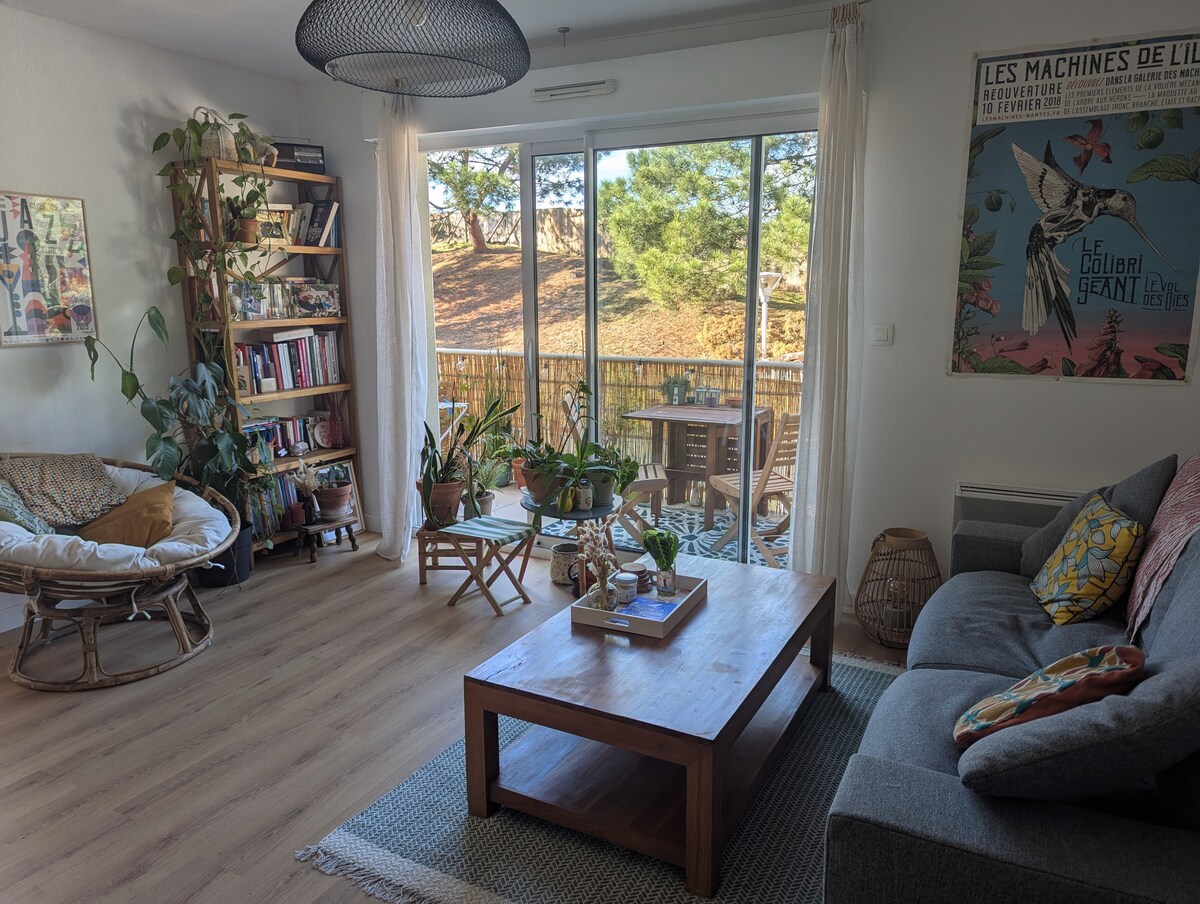 Apartmán v zahradě, v přízemí naší vily, velmi klidná oblast za dunou Santocha, 2 minuty chůze od pláží Capbreton a surfařských míst. Vstup s lodžií, vybavená kuchyň otevřená do obývacího pokoje TV manželská postel 160 cm, kabina ložnice 2 samostatné postele, koupelna, samostatné WC. Zahradní zahrada se zahradním nábytkem, jídelním stolem. Free WIFI Povinné ložní prádlo a úklidový balíček se platí na místě při příjezdu: 20 EUR/pobyt