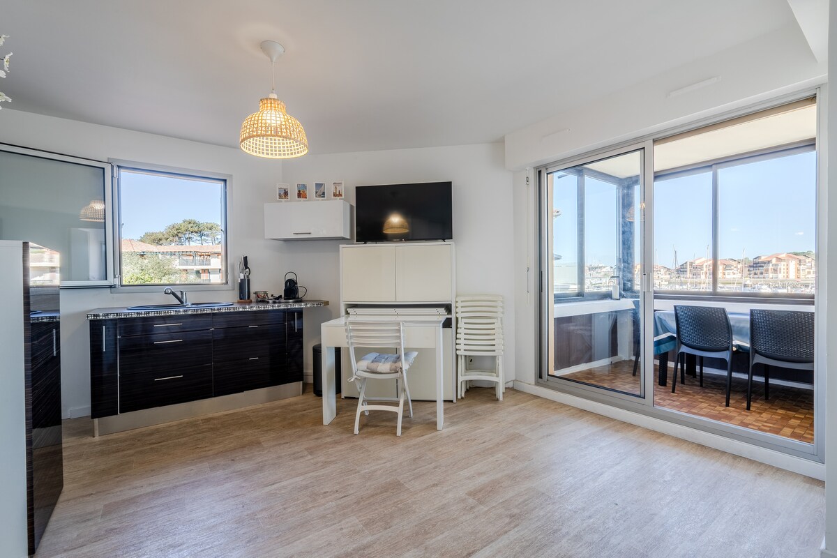 Appart / studio útulná / průmyslová atmosféra s nádherným výhledem na přístav Capbreton. Svede vás druhým patrem, rozloženým pod krokvemi, včetně 5 skutečných lůžek. Nachází se v blízkosti Hossegor a Capbreton, je ideální základnou pro objevování regionu, surfařských míst, krásných pláží v regionu Landes nebo jen příjemný večer na terase.
