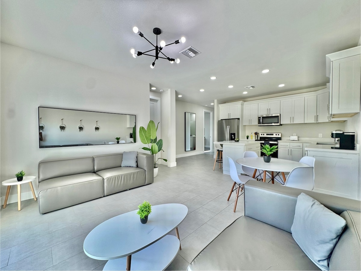 Vítej ve svém novém domově daleko od domova v krásném Cape Coral! Tento okouzlující řadový dům se 3 ložnicemi a 2 koupelnami nabízí plně vybavenou kuchyň, takže je ideální pro rodiny nebo skupiny, které hledají pohodlné ubytování. Pohodlně se nachází 19 mil od působivého obchodního a návštěvnického centra Sanibel a Captiva, které nabízí postřehy a tipy pro váš pobyt. Nedaleko letiště: Pouze 20 mil od mezinárodního letiště SWFL, takže cestování do a z vašeho úniku je hračka.