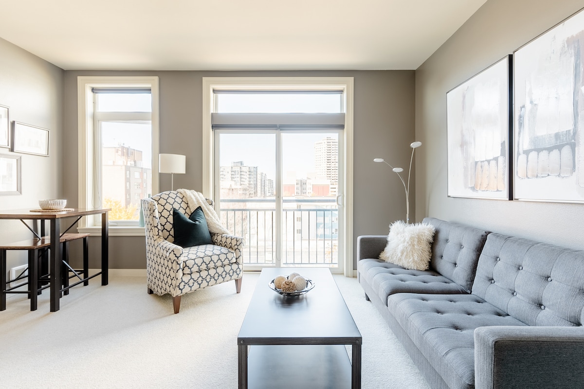 Jen pár kroků ven do úžasné čtvrti s moderními obchůdky a restauracemi, Trader Joes, Organic Market, Bus & Light Rail, snadnou procházkou centrem. Walking Score 97 Furnished Open Concept 1-pokojový byt, okna od podlahy ke stropu, plně vybavená kuchyň, pračka/sušička a moderní nábytek, navíc rozkládací pohovka velikosti queen size. Dva výtahy, žádné schody k výstupu. Bezplatné vyhrazené PARKOVÁNÍ v zabezpečené podzemní garáži. Condo lounge, střešní terasa s nádherným výhledem na město, internet/Wifi, TV.