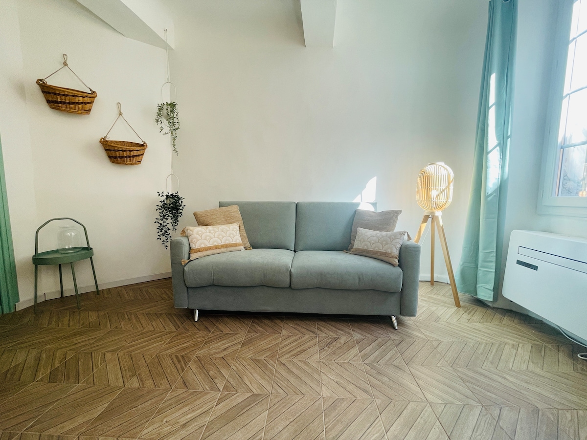 Cocon Sauge je plně zařízený byt, který byl zrekonstruován v červnu 2023 ve staré kamenné budově se 3 byty. Má 6 lůžek, z toho 2 postele 160x200 a rozkládací pohovku 140x190. Ideálně se nachází ve starém centru města, všechny obchody jsou v docházkové vzdálenosti. Je plně vybaven a klimatizován a okouzlí vás svou příjemností a klidem. Myslete pouze na svůj odpočinek a na příjemné chvíle s rodinou nebo přáteli!