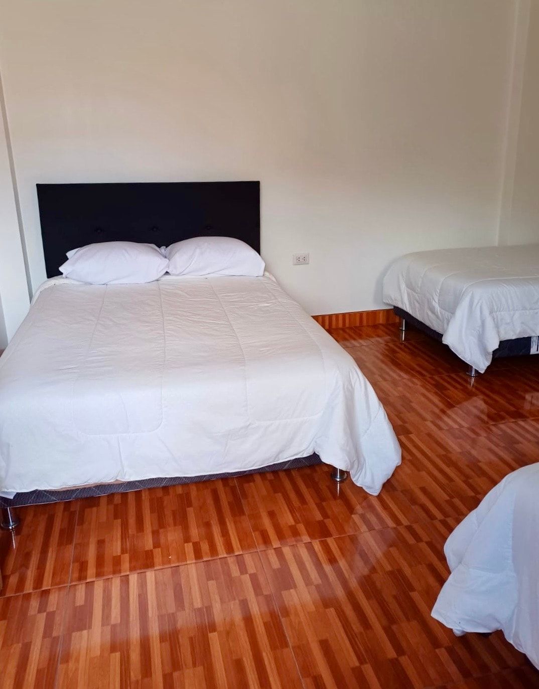 Amplio cuarto con una cama doble y dos simples, gran baño con ducha y armario con caja de seguridad. Silencioso y cálido está situado en el segundo piso con acceso desde la terraza superior. Espacioso cuarto con gran espacio interior donde pueden apreciar hermosas vistas al nevado Copa y a nuestra Biochacra. Incluye desayuno, botella de agua de cortesía y servicio de lavandería. Contamos con restaurante y chef propio, así como una chacra orgánica de donde recolectamos diariamente las verduras.n
