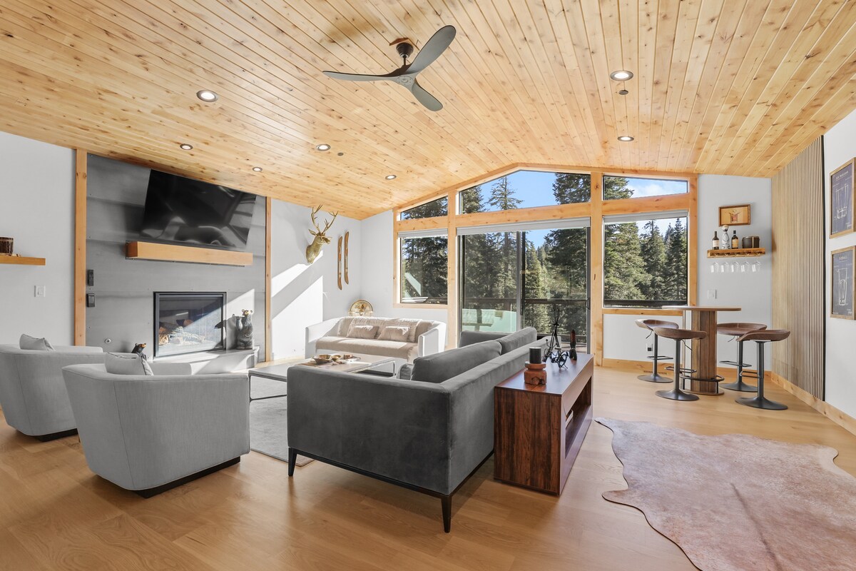 Vítej v oslnivé horské chatě, kompletně zrekonstruované oáze s více než 3 ložnicemi a 2,5 koupelnami na západním břehu jezera Tahoe poblíž Palisades Tahoe a Homewood. Tento 195 m² velký domov má moderní kuchyň, velký pokoj a klidnou apartmá s výhledem na les. Užij si sněhové zimní přístupové cesty a snadné parkování v prvotřídní lokalitě poblíž kavárny Fire Sign Café, tržiště West Shore Market, města Tahoe City, lyžování, restaurací, turistických stezek a okouzlující sněžnicové smyčky jen o jednu ulici dál. Je to skutečný horský útěk, kde je každý okamžik kouzelný.