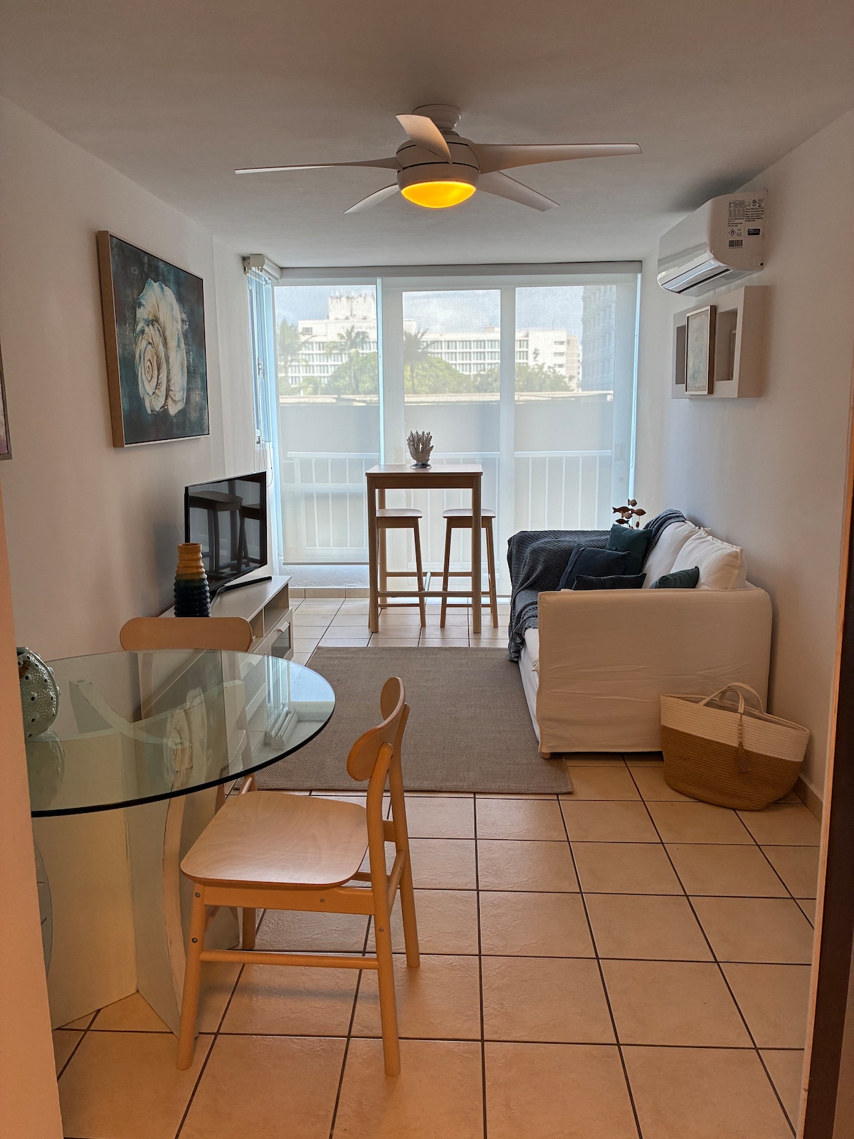 Hi. Looking for a beachfront apartment? Look no further! This is a beachfront 1 bedroom apartment that sleeps 2 in the best beach in San Juan! 15min from Old San Juan, 7min from the Airport, near shops, restaurants, hotels, casinos, nightlife, and a vibrant walking district. Hear the ocean waves, feel the breeze, enjoy the sun! The building has a private beach entrance, basketball court, tennis court (currently closed), pool, gazebos, bbq area, and more! Welcome to the Island Living experience!