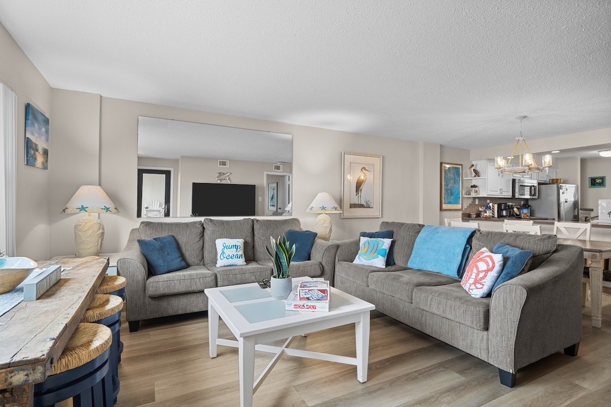 Probuď se s přímým výhledem na oceán ze svého soukromého balkonu! Tento stylový apartmán na pláži nabízí světlé otevřené prostory, plně vybavenou kuchyni a útulné ložnice. Užij si výhody rezortu, včetně vnitřních/venkovních bazénů, vířivky, sauny a posilovny – to vše jen pár kroků od písku. Tento apartmán je vhodný pro děti a nabízí 2 velká lůžka v pokoji pro hosty a sportovní komplex s mini arkádou, který zajistí zábavu bez ohledu na počasí! Tato jednotka je hned vedle výtahu pro snadný přístup. Mimo sezónu jsou k dispozici také měsíční pronájmy.