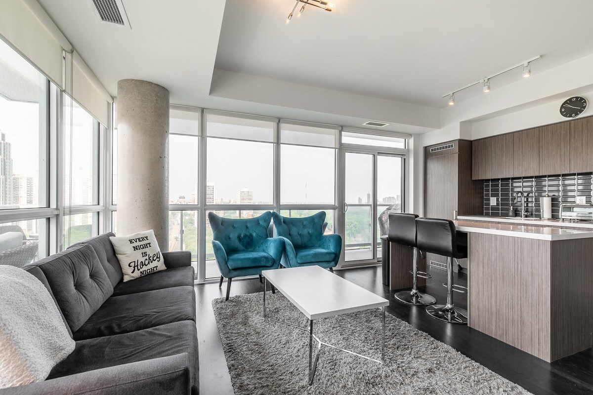 Moderní byt v Yorkville s vyhrazenou místností na líčení!