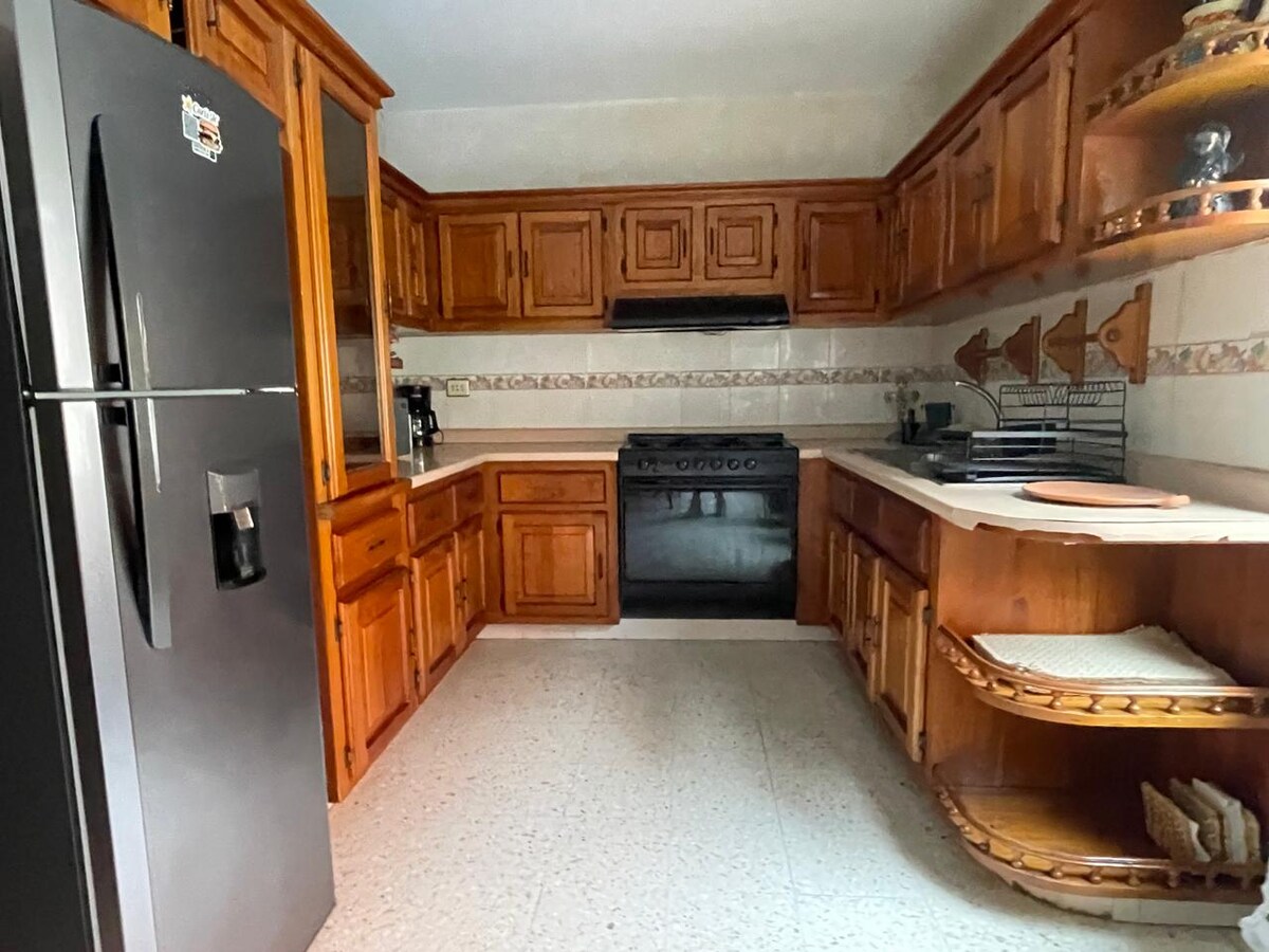 We have an extra bed for 1 more person, ask why we have a pool we are 3 blocks from the city center, with equipped kitchen,microwave, refrigerator, blender, stove, coffee maker, heated kitchen utensils and screens, grill, large backyard, covered garage, 2 full bathroom hot water,living room with screen and ceiling fans the completely safe area nearby shopping malls, cinemas, market, main square, pathineras and restaurants