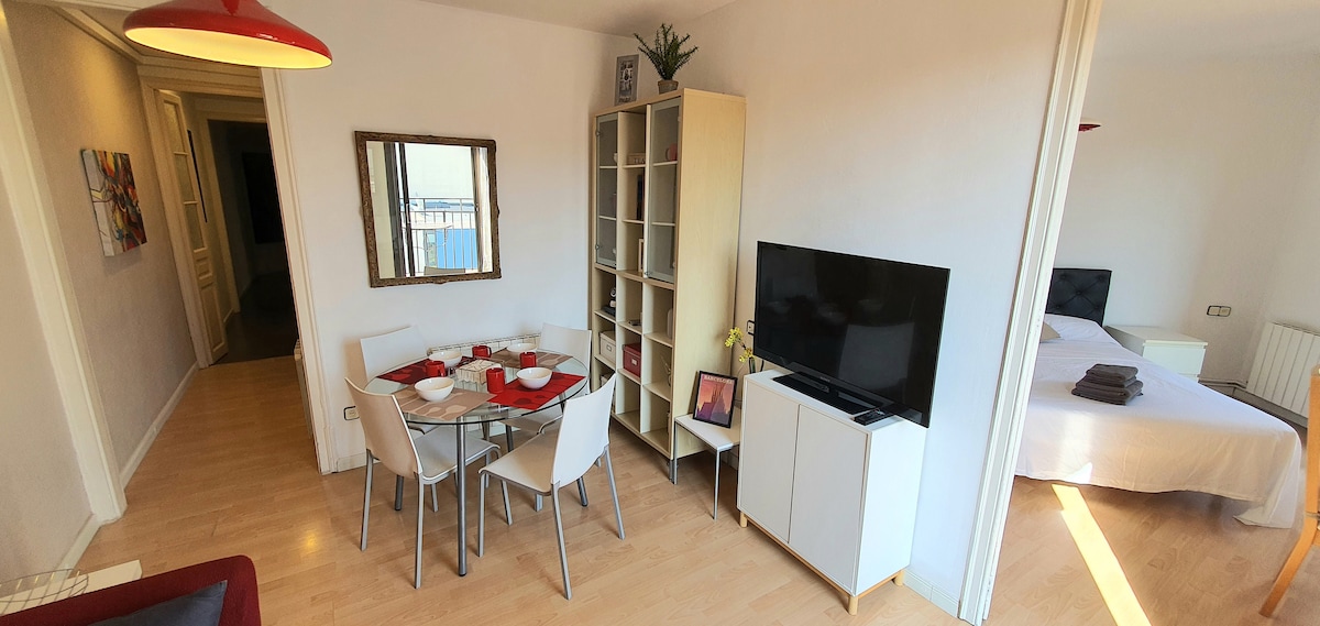 The apartment is located on Barcelona's Gran Via, 10 minutes walking from Plaza Espanya. Direct bus stop to El Prat Airport, quick access to Barcelona city centre by bus and metro. Ideal for trade fairs, concerts at Palau Sant Jordi and general tourism.