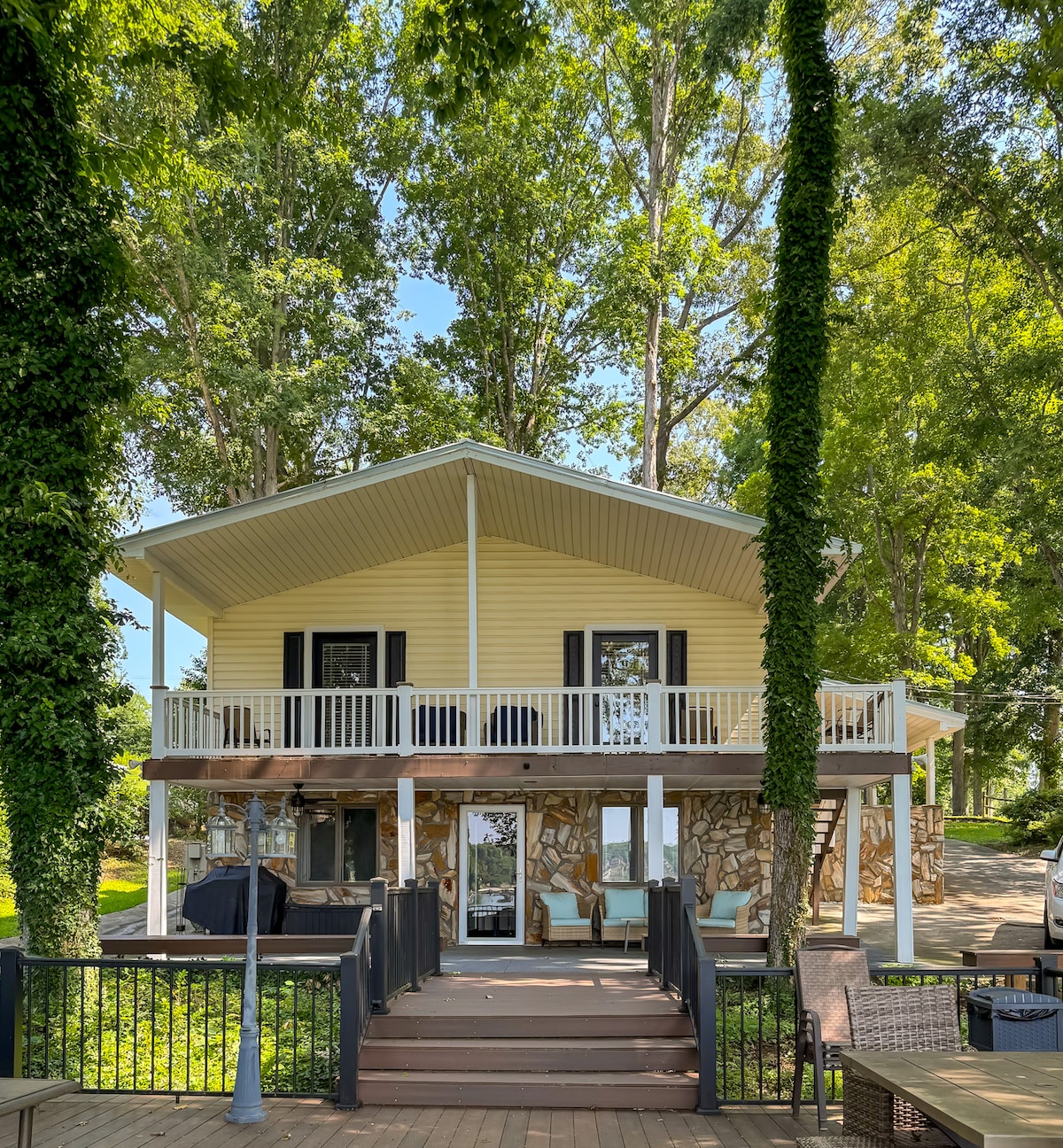 Tento nový dům v řemeslném stylu s bytem nad garáží byl postaven v roce 2020. Dům se může pochlubit úžasným výhledem na velké jezero Norman. Dvoupokojový duplexní apartmán má soukromý vchod a výhled na jezero z každého pokoje. Užijte si koupání, opalování a západy slunce na dvoupatrovém molu. Pronájmy lodí jsou snadno dostupné z přístavů v oblasti Denveru a loď může být uložena v přístavišti. Snadné dojíždění do Charlotte.