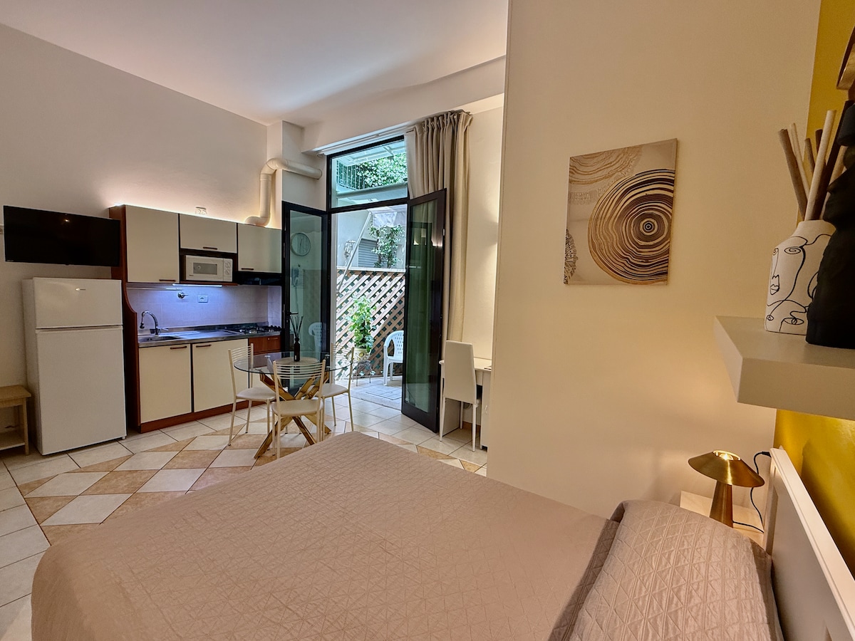 La vostra "Casa delle Vacanze" , Il monolocale M-2 è perfetto per una coppia da sola o con un bimbo piccolo, c'è un letto matrimoniale alla francese (è possibile aggiungere un lettino da campeggio), cucina attrezzata, TV 32', condizionatore caldo/freddo e tutti i comfort di un Residence moderno ed elegante in pieno centro e a venti metri dal mare, dedicato alle famiglie e con gestione famigliare da 3 generazioni. Tantissimi servizi per grandi e piccini per una vacanza all'insegna del relax.