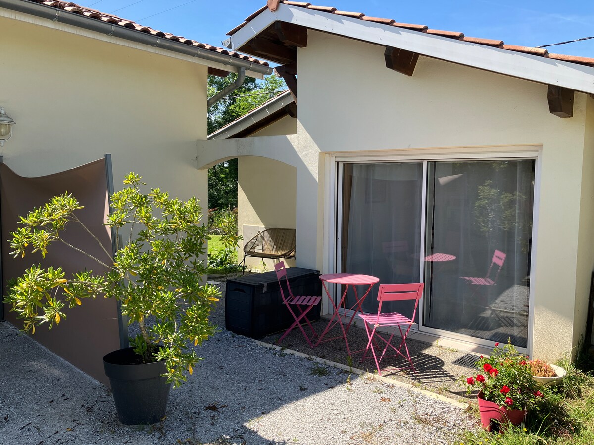 Studio avec terrasse (BBQ) et jardin indépendants. Environnement calme et verdoyant. Accès piscine partagée (12x5m) & la bodéga (bar, billard et fléchettes). A 5 mn de toutes commodités, plages(30 mn), Biarritz/Bayonne(40 mn), Dax(20mn), Espagne(50mn). Ami(e)s motards ou cyclistes, un garage fermé avec électricité vous attend face au logement. Un salon de massage est à votre disposition où vous pourrez vous faire prodiguer un soin énergisant, relaxant ou un drainage lymphatique.