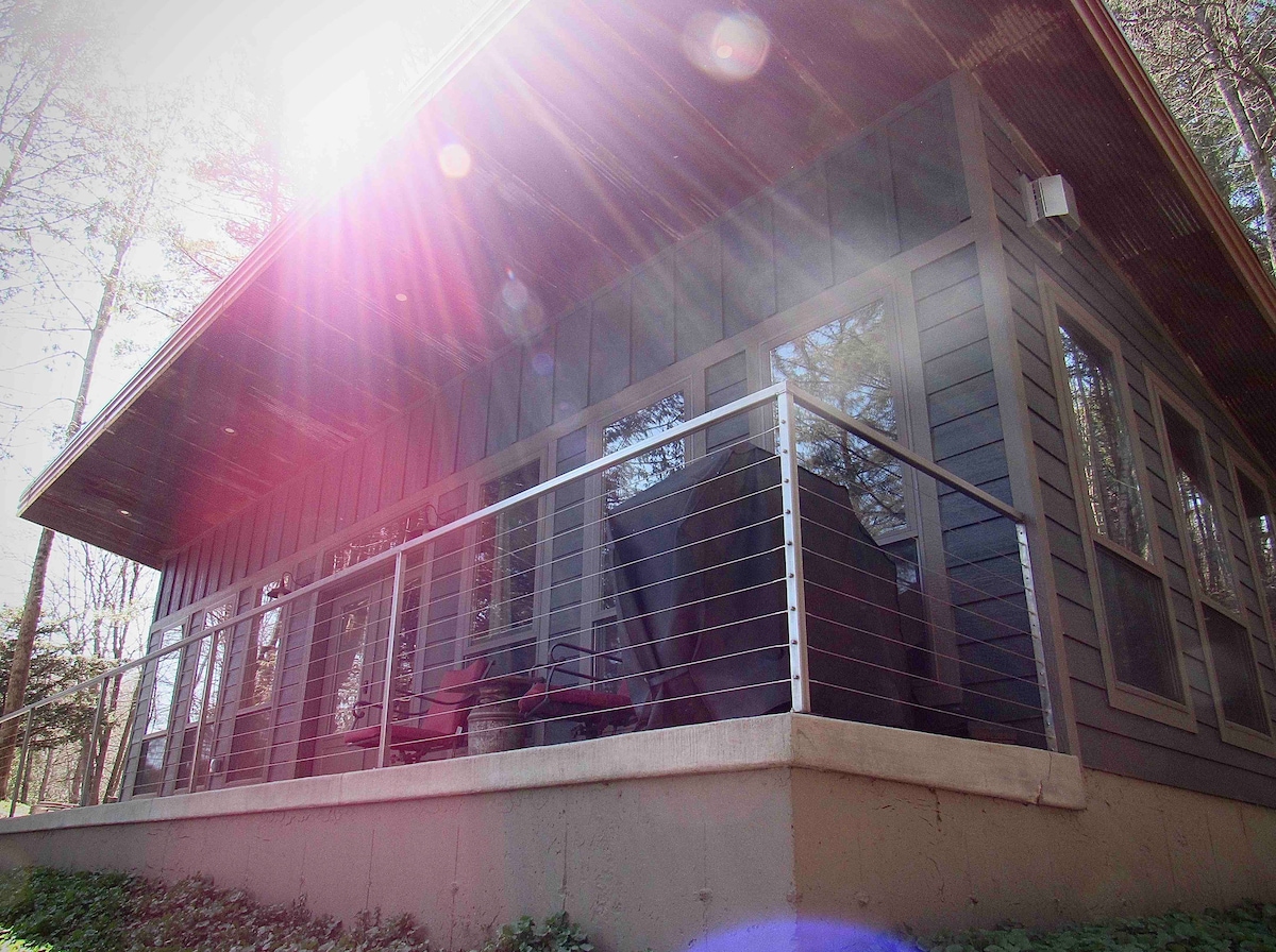 Tato chalupa na nábřeží má krásný výhled na řeku Wisconsin. S manželem tady žijeme už víc než 20 let. Milujeme tuto oblast – není nic jako chladné, svěží ráno na středozápadě s výhledem na řeku Wisconsin. Nebo si vychutnejte skvělou sklenku vína (nebo pivo Wisconsin) při sledování velkolepého letního západu slunce z terasy. Očekávejte klid a pohodu, protože jsme dost daleko od centra Dells, abychom se vyhnuli davům a hluku. Těšíme se, až se u nás ubytujete vy i vaši nejbližší.