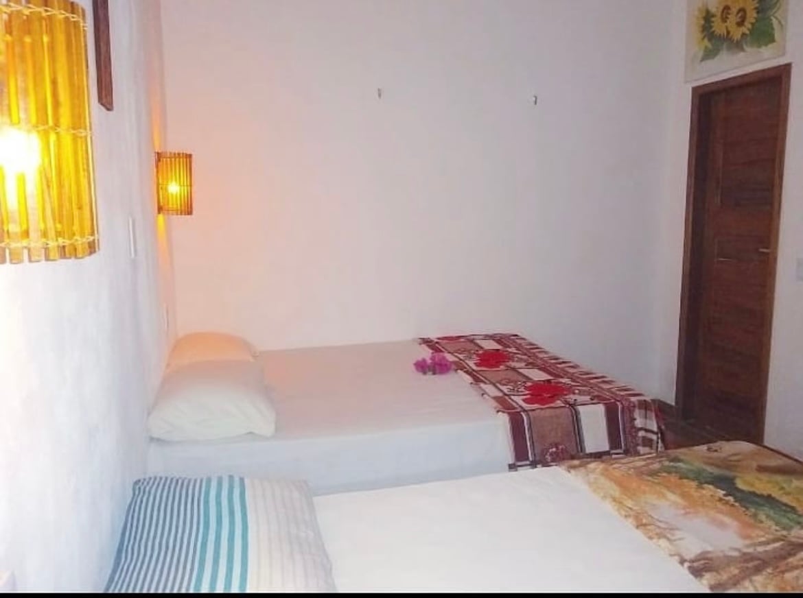 Velký, prostorný apartmá. Houpací síť na balkoně. Velmi větrané. Privilegiované místo. 1 manželská postel + 2 samostatné postele (patrová postel). Tento apartmá se nachází v přístavbě spolu se 4 dalšími apartmány. K dispozici je plně vybavená společná kuchyňka. Nachází se méně než 100 metrů od pláže. Přístup do pokoje vyžaduje stoupání po schodech. Praia de Peroba v Icapui/Ce je rybařská vesnice s humry, která je velmi originální. Ideální pro relaxaci a užívání si přírody. Okouzlující, rajský. Přístup po schodech. Nejlepší výhled.