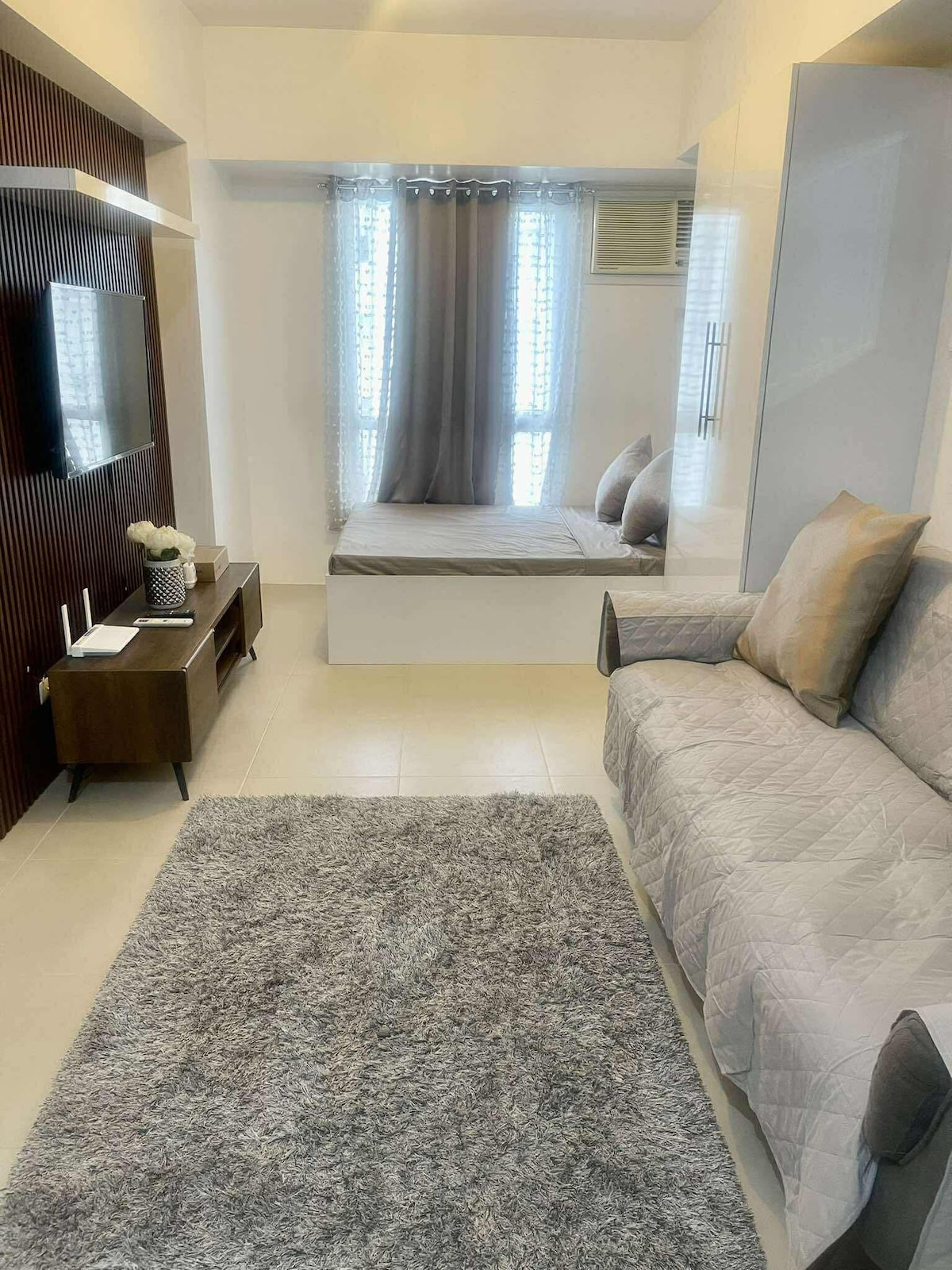 Welcome to our fully-furnished studio unit, thoughtfully designed to give you all the comforts of home. Located right at the heart of the city, our space offers a peaceful ambience and a relaxing view of both the city skyline and the lush gardens of IT Park. Whether you’re here for business or leisure, you’ll find everything you need for a comfortable stay. As your host, I’m always happy and ready to assist you to ensure your experience is smooth and enjoyable. Book your stay now!