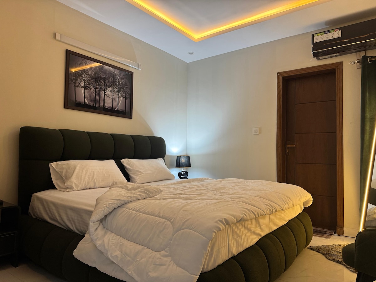Zažij nezapomenutelný pobyt v našem moderním apartmánu s 1 ložnicí, který se nachází v centru města v E-11/2, kde jste jen pár kroků od nejlepších řetězců rychlého občerstvení, jako jsou KFC, Domino's, Papa John's, Cheezious a mnoho dalších. Užij si moderní vybavení, plně vybavenou kuchyň a pohodlný obývací prostor. Vysokorychlostní wifi, manželská postel a 55" Google TV s aktivovaným Netflixem a Amazon Prime. Rezervuj si pobyt ještě dnes a buď jako doma.
