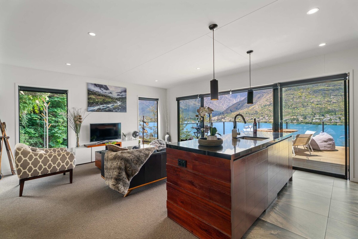 Moderní vila Queenstown Hill se 2 ložnicemi – pěšky do města Využij letní dobrodružství v Queenstownu naplno a ubytuj se v této stylové vile se dvěma ložnicemi a dvěma koupelnami, která je vzdálena necelých 10 minut chůze od jezera a nočního života. Užij si otevřený prostor s klimatizací a parkováním zdarma. Perfektní základna pro přátele, kteří chtějí objevovat cyklostezky, dobrodružství na jezeře, vinné túry, golf a živou restauraci v Queenstownu.
