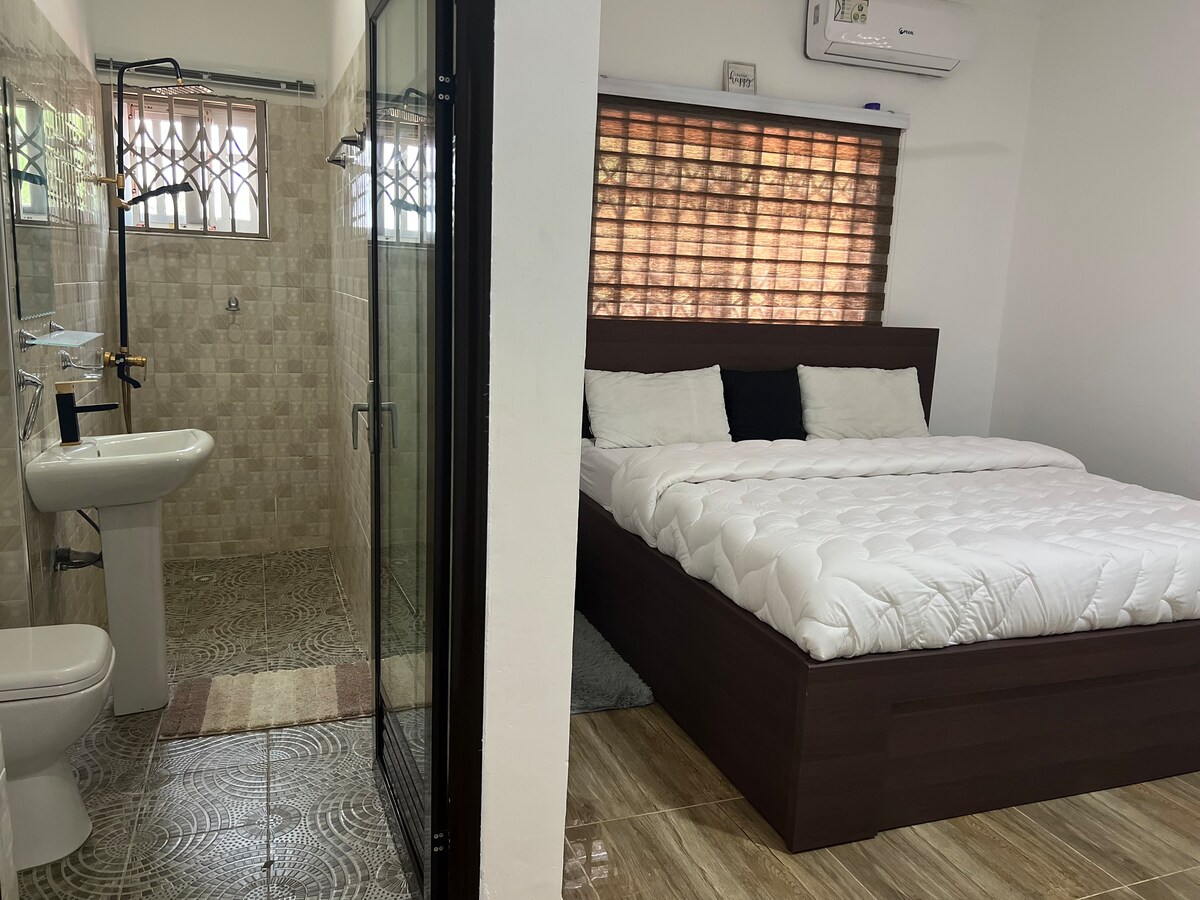 Dobře zařízený apartmán s prostornou spravovanou zahradou pro relaxaci, akce, rodinné večírky, modlitební meditaci atd. Bezplatné parkování. Dobré pro osobní, rodinné nebo firemní pobyty. 15 minut jízdy na různé pláže. 45 až 60 minut jízdy od hlavního města Accra. Hodinu jízdy do historického města Cape Coast.