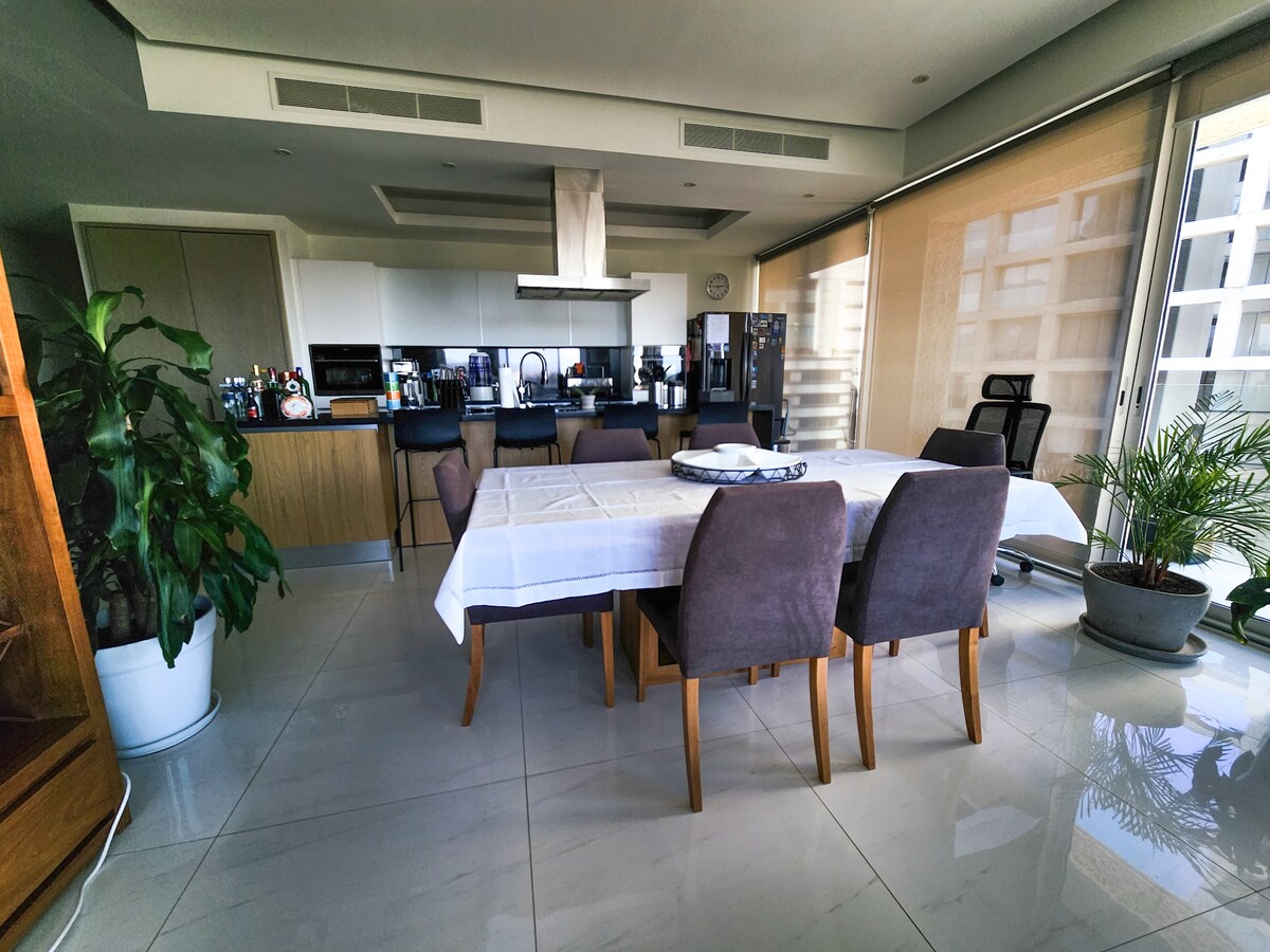 Luxusní byt v La Cité, Santa Fe, se skvělým výhledem, designovými prvky a samoobslužným procesem ubytování pomocí chytrého zámku. 10 minut od nákupního centra Santa Fe a nemocnice ABC. Rychlý internet přes 100 Mb/s, velká manželská postel a pohovka. Vybavení: posilovna, prostor pro psy a nákupní zóna. Zahrnuje parkovací místo a k dispozici je nepřetržitě hlídané veřejné parkoviště. Domácí mazlíčci vítáni (malí domácí mazlíčci, max. 1). Ideální pro dlouhodobé pobyty; zeptej se nás na slevy.