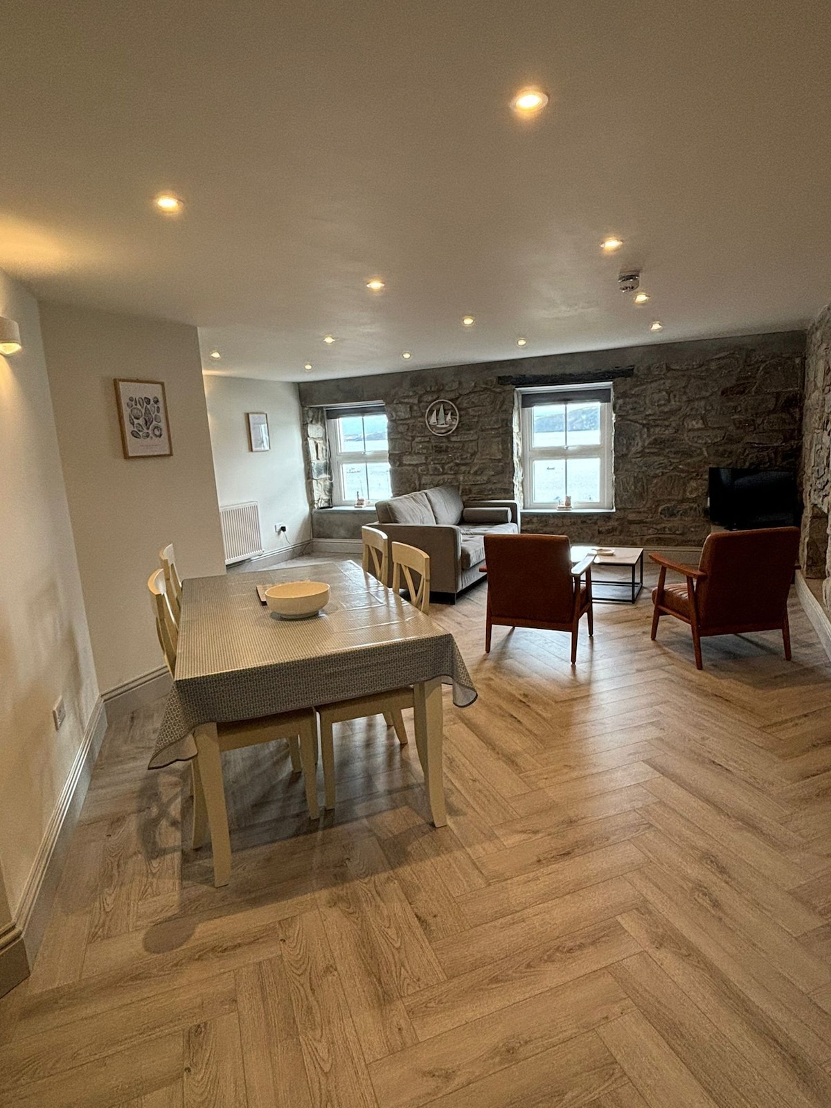 Experience the ideal seaside getaway in our newly renovated ground-floor apartment. With stunning sea views, a well-equipped kitchen, smart TV, and fast WIFI, you'll have everything you need to relax and unwind. Enjoy a luxury king-sized bed overlooking a stone courtyard. Only steps away from the beach, and a short five-minute walk to the town centre and train station. Easy access to all the shops, bars, and eateries Aberystwyth has to offer. The perfect setting for an idyllic seaside getaway.