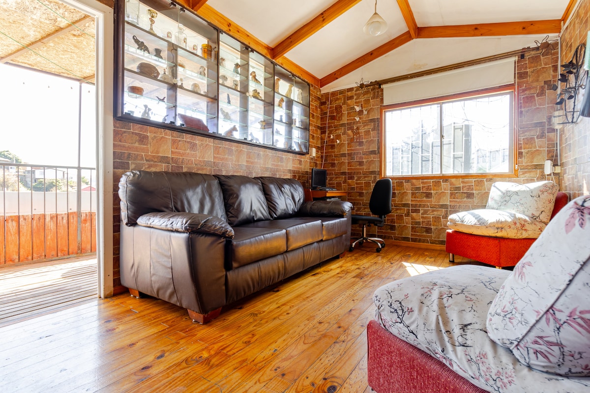 Samostatný byt ve velké vile v Cerro Alegre. Ložnice má krásné staré parkety, výhled na moře, celý záliv Valparaíso a na svěží zelenou zahradu. Exkluzivní kuchyně a jídelna se spojují, abyste si to užili. Dům se nachází v klidné čtvrti s bohatou historií, pár kroků od dobrých restaurací, barů a kaváren, výtahů El Peral, Reina Victoria a Turri a vyhlídek Atkinsons, Gervasoni a Paseo Yogoslavo. Ideální pro odpočinek a procházky.