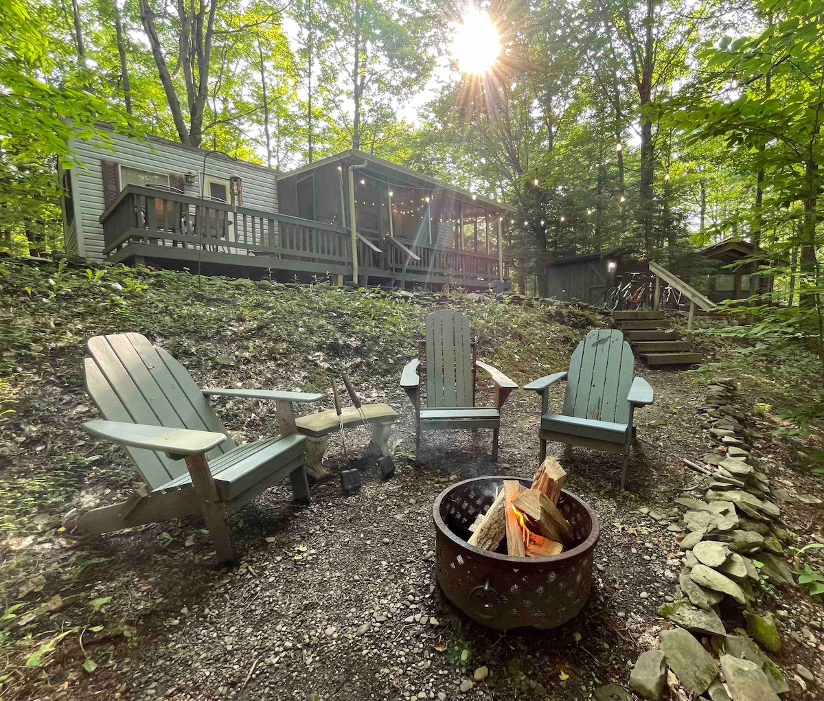 Náš okouzlující srub, zrekonstruovaný s moderním vybavením, je zasazen na 3 akrech malebného lesa, v blízkosti státní půdy, ideální pro rodiny nebo přátele, kteří hledají venkovní dobrodružství. Užij si pohodlnou ložnici, podkrovní prostor pro hosty navíc a úchvatný výhled z velké terasy. Ponoř se do přírody a zůstaň ve spojení s vysokorychlostním WIFI. Rezervuj si pobyt ještě dnes a zažij klid a pohodu v našem malém ráji.