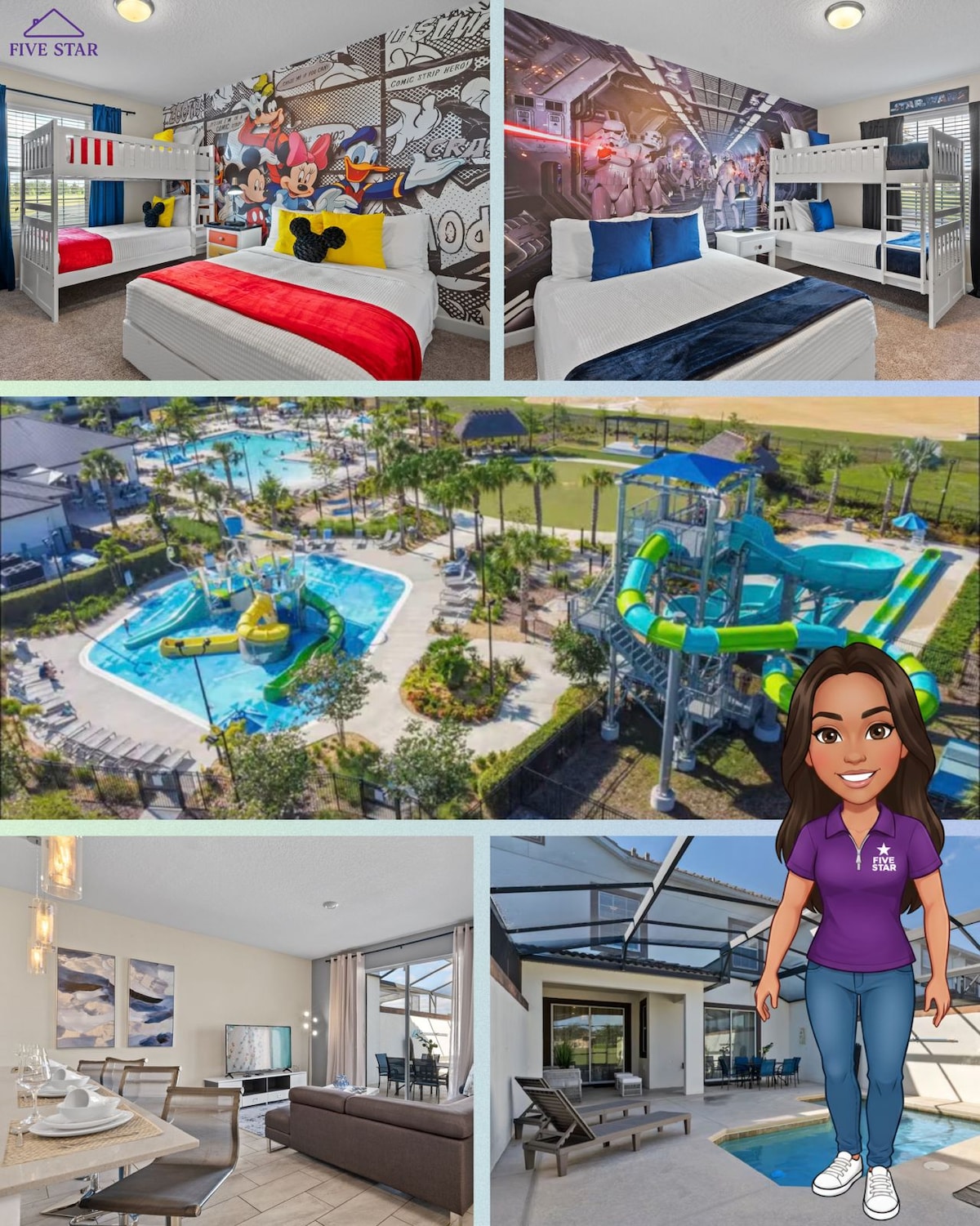 Luxusní ubytování s dekorem Disney, 6 pokojů, 4,5 koupelny, soukromý bazén a rezort