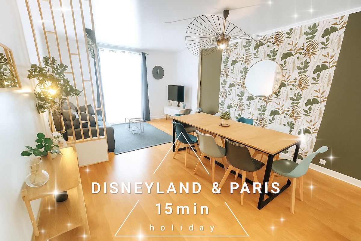 Tento útulný apartmán s jedinečnou výzdobou plný života se nachází mezi Paříží a Disneylandem a je ideální pro rodinnou dovolenou či služební cestu. 📍 Ideální poloha: pouhých 20 minut od Disneylandu a Paříže! 20 minut autem nebo 25 minut hromadnou dopravou do Disneylandu, 20 minut do Paříže hromadnou dopravou. 📍Ubytování je jen 5 minut chůze od stanice RER A Noisy-Champs a Centrex.