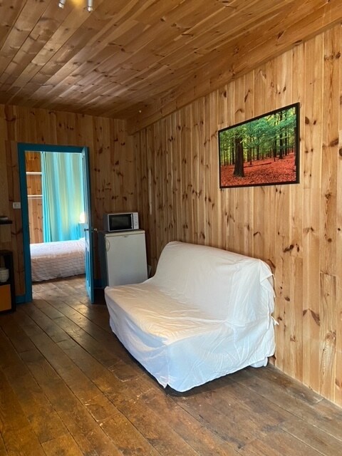 Situé au lieu-dit Orfeuille Nord de la Lozère entre Aubrac et Margeride, à 3km de l'autoroute A75 proche d'un plus beaux village de france ( Malzieu-Ville) ainsi que de nombreux parcs animaliers ( parc aux bisons, aux loups) accro branches tyroliennes région idéale pour rando pêche nous vous proposons un logement d'environ 40m2 au rez de chaussée d'une maison en pierre et décoré dans le style campagnard Il donne accès à une terrasse privative donnant sur un grand parc ombragé et clôturé.