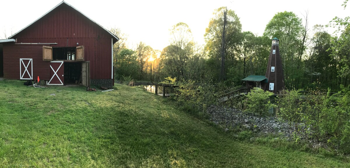 Tento krásně navržený a luxusní dům na stromě se nachází na hřebenu s výhledem na náš potok. Jen 25 minut jízdy do centra Nashvillu, jste ukrytí uprostřed tyčících se tvrdých dřevin - daleko od hluku města. Dům na stromě je pečlivě navržen a zařízen tak, aby vytvářel atmosféru klidu a krásy. Toto ubytování je ideální pro pár, ale mohou zde přespat čtyři osoby (dvoulůžka v podkroví). Večírek v areálu není povolen.