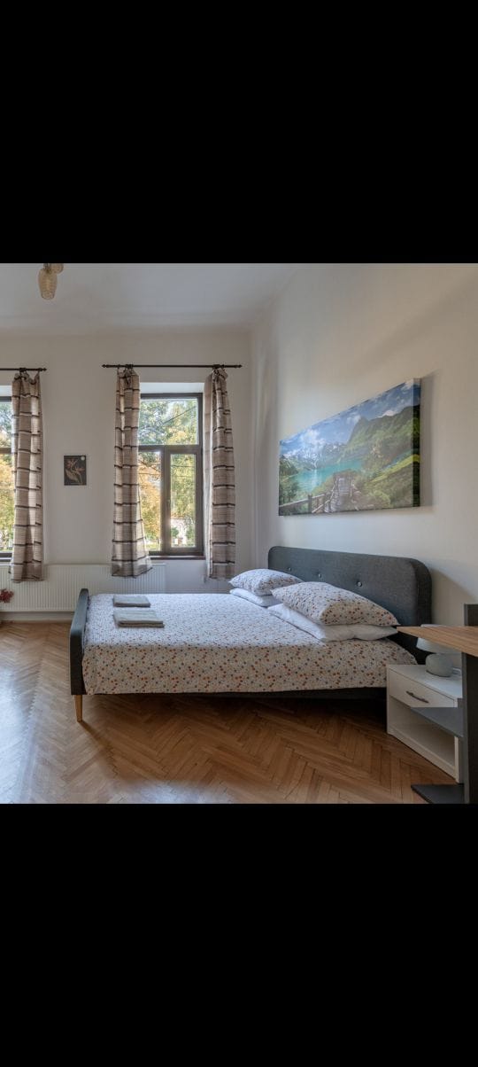 Ahoj budoucí hosté! Vítejte v Downtown Memo, prostorném apartmánu se dvěma ložnicemi a obývacím pokojem v centru Kluže-Napoky, ideálním pro rodiny nebo služební cesty. Nachází se ve druhém patře historické budovy s vysokými stropy (bez výtahu). Byt o rozloze 107 m² je díky své poloze na nádvoří klidný. Jste jen pár kroků od hlavního náměstí, centrálního parku, muzeí, kaváren, restaurací, barů, obchodů a autobusového nádraží. Připrav se na pohodlný a klidný pobyt přímo v centru města!