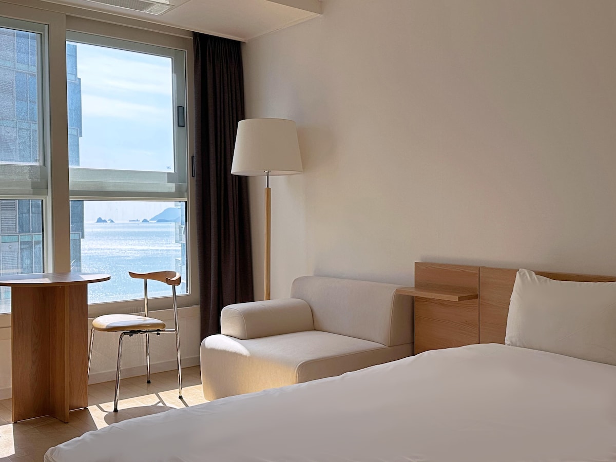 Postel Pony#King + King / výhled na moře / 2 minuty od pláže Haeundae / bezplatná jízda na elektrickém autě / pohodlná postel / rodinný výlet