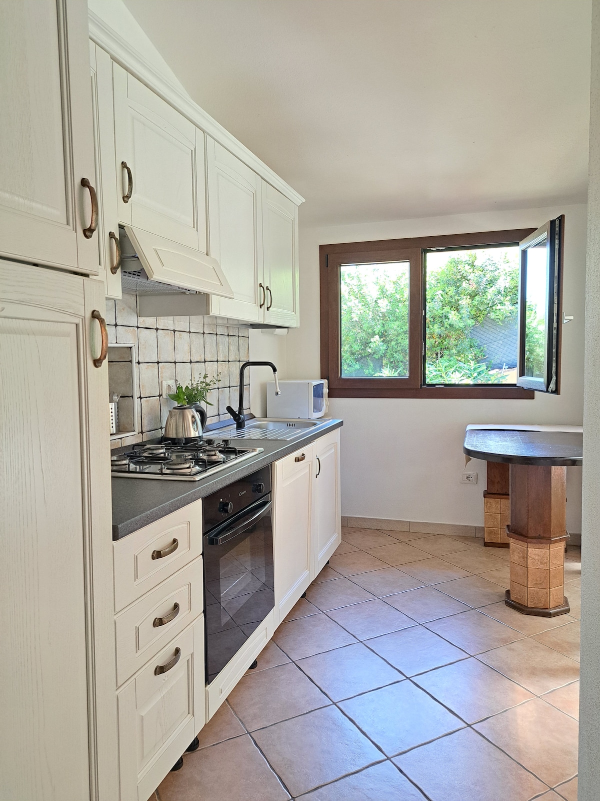 Vila v typickém sardinském stylu, kompletně zrekonstruovaná s kvalitními povrchovými úpravami, v klidném kondominiu jen pár kroků od pláže Is Morus (350 m), s ostrahou, sportovními zařízeními a dětským hřištěm. Nabízený dům je součástí větší vily: dvě koupelny, jedna „en suite“, dvě dvoulůžkové ložnice, vybavená kuchyně, obývací pokoj s výhledem na krytou terasu a velký trávník. Několik minut jízdy autem od nejkrásnějších pláží jižní Sardinie a rušné vesničky Pula.