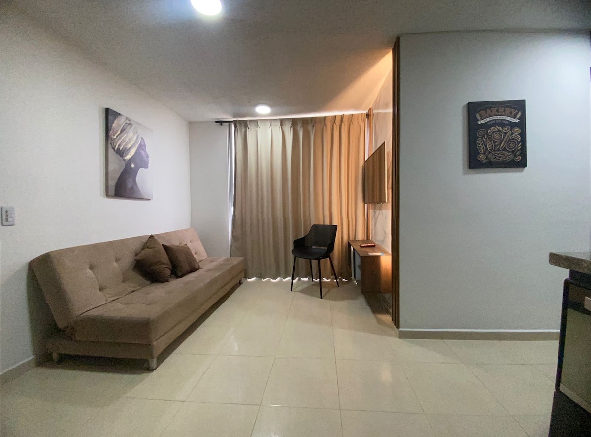 Minimalistický apartmán pro váš pobyt v Cúcuta. Ponořte se do jemné elegance tohoto klidného a centrálně umístěného útočiště, navrženého s minimalistickým přístupem. Nabízí luxusní pohodlí a nachází se v pulzující čtvrti, kde na vás čeká rozmanitost obchodů, restaurací a supermarketů, které jsou připraveny doplnit váš zážitek z cesty.