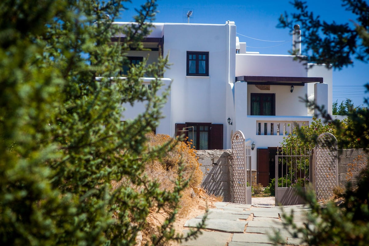 Fully equipped 40sqm self catering suites with the use of the infinity pool, set in an intimate, rural complex with beautiful landscaped and maintained gardens. Luxury Italian furnishings, flat screen TV with Netflix,very fast Wi-Fi. Own terrace and deck with breathtaking 270 degree views over the Aegean sea, surrounding islands and sunset. Suited for couples & families looking for a quality, safe and peaceful environment yet very close to the main town of Chora. Not suited for party people!!