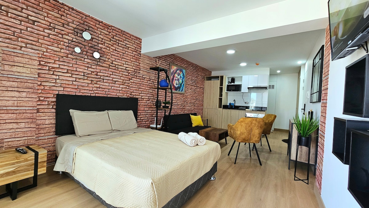 ¡Departamento de Estreno en Barranco! Este acogedor espacio cuenta con una decoración moderna. Disfruta de 2 Smart TV con Netflix y Disney, en la sala y dormitorio. Descansa cómodamente en una cama de 2 plazas, también cuentas con un sofá cama en la sala y disfruta de nuestra cocina totalmente equipada . Además cuentas con fabulosas áreas comunes de uso gratuito: piscina, jacuzzi con hidromasajes, gimnasio y coworking. ¡No esperes más y reserva ahora para una estancia inolvidable!