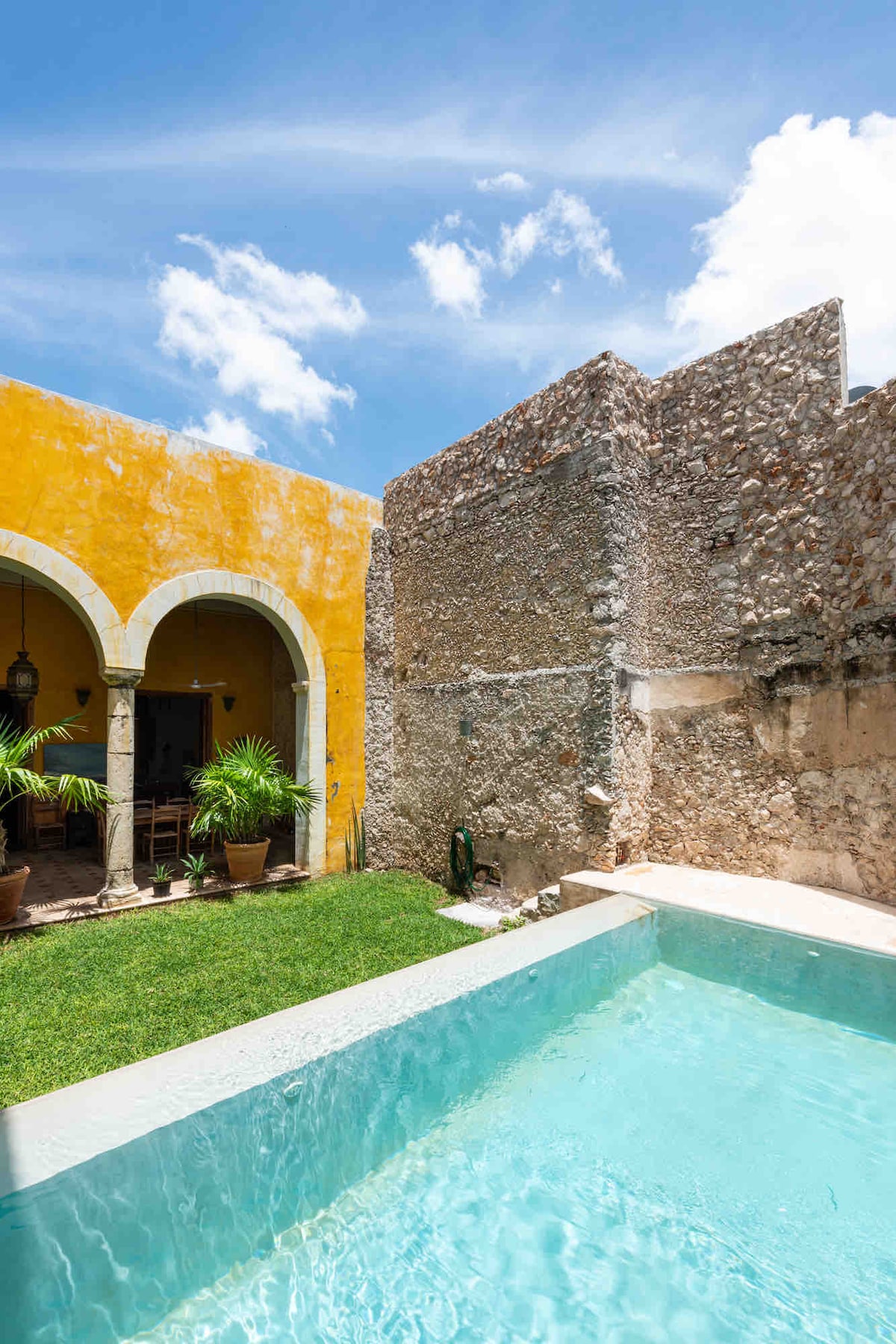Ideální základna pro objevování Yucatánu nebo relaxaci v krásném prostředí. Dům se nachází v klidné ulici v historickém centru Meridy a pojme až 6 hostů ve třech ložnicích, má samostatnou kancelář/TV místnost pro práci nebo zábavu a velkou kuchyň/obývací/jídelní kout s dostatkem denního světla. Můžete si odpočinout pod palapou u bazénu nebo na centrálním nádvoří pokrytém vinnou révou, grilovat na střešní terase nebo si užívat západy slunce ze zvonice.